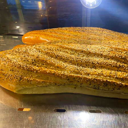 bolla de pan con 3 tipos de queso y tocineta .. mozarella , parmesano y queso tierno
