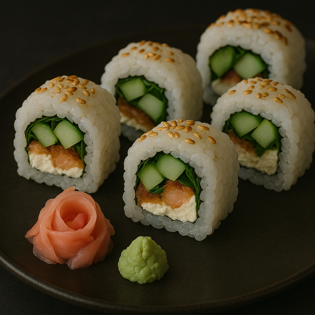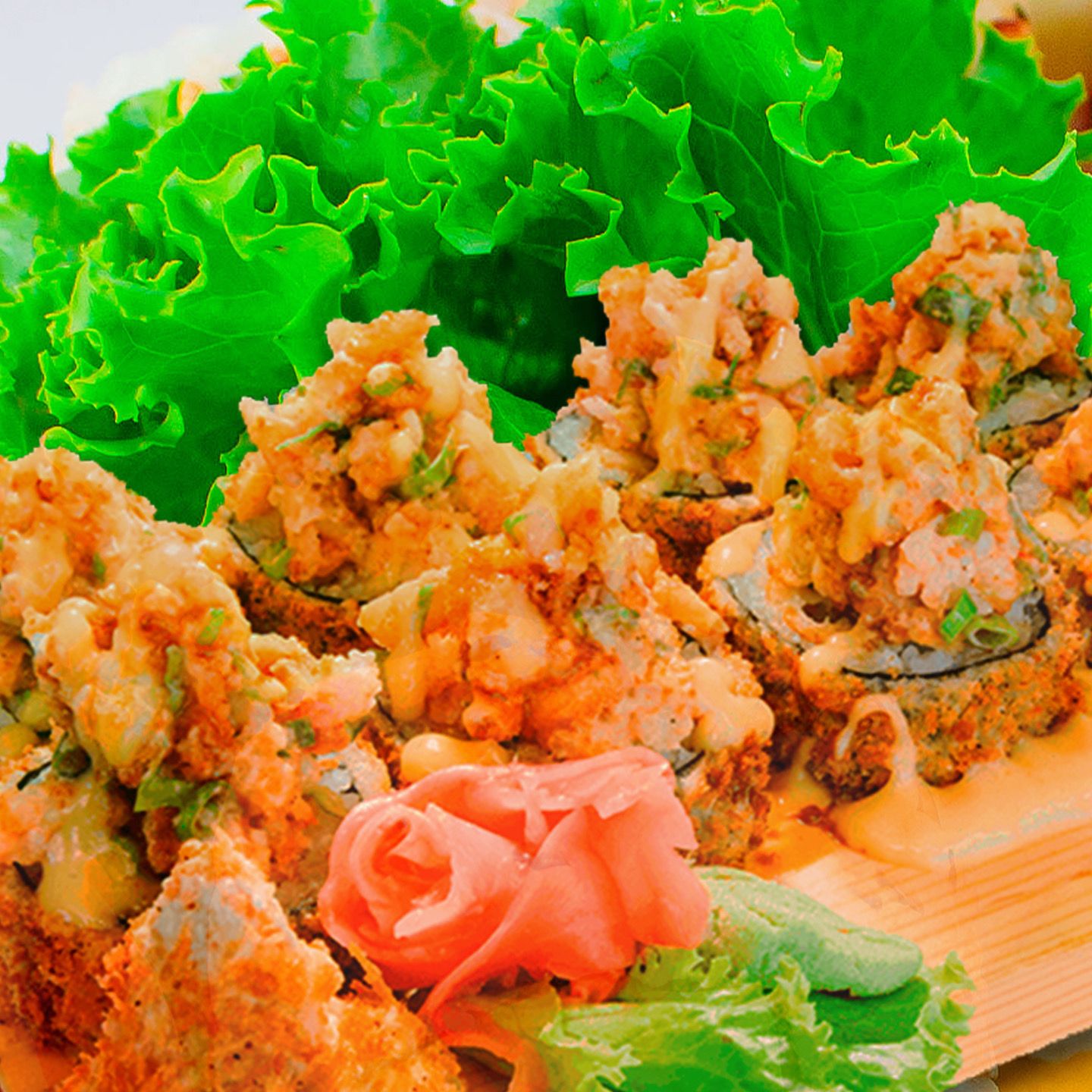 Roll relleno de camarón tempura y kanikama tempura, con queso crema y aguacate, cubierto de masago y sésamo, bañado en nuestra deliciosa salsa Fiji. Texturas crocantes con un toque tropical que encanta.