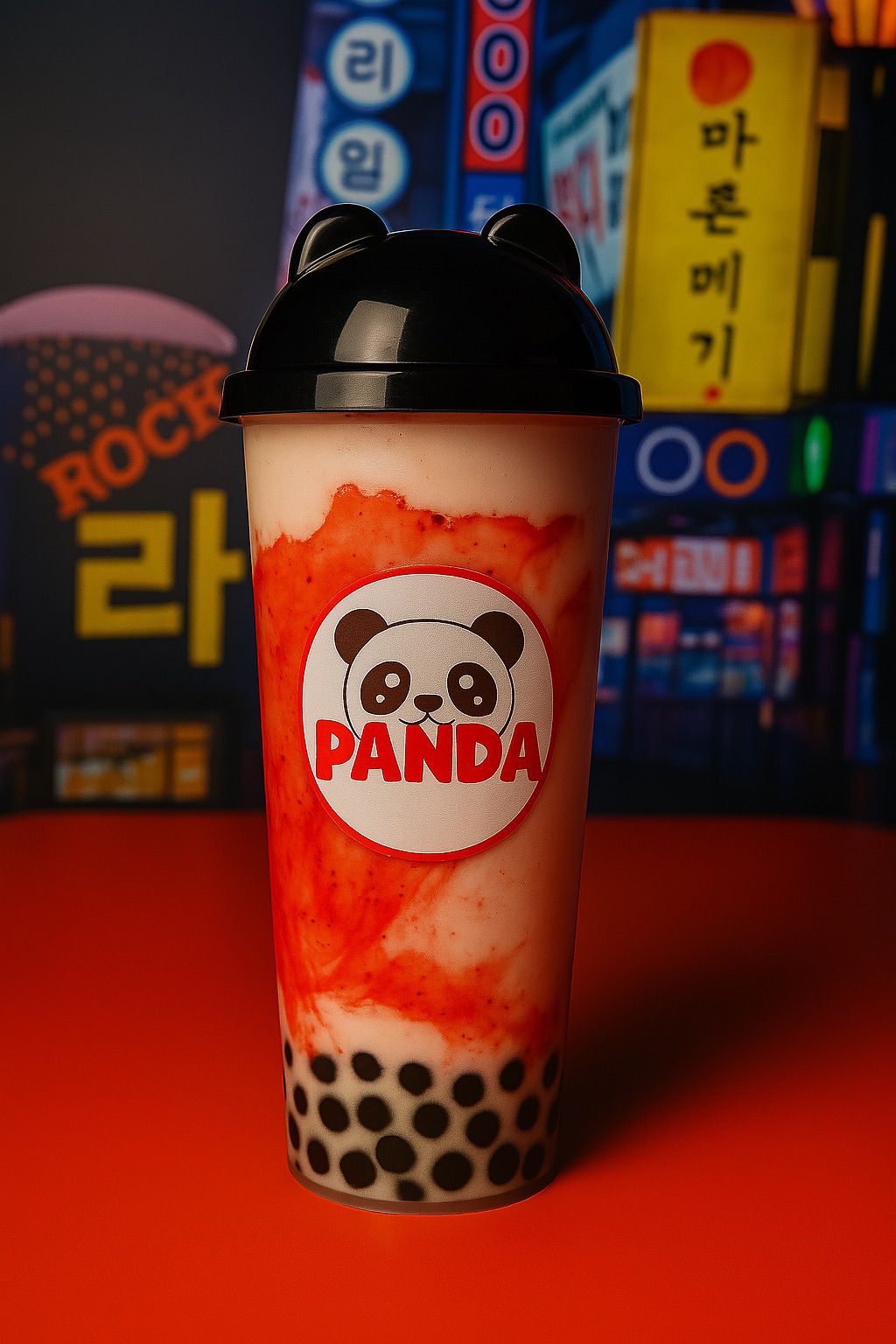 Bubble tea de Fresa, con tapioca y crema de la casa. Refrescante y cremoso, ideal para los que aman los sabores frutales.