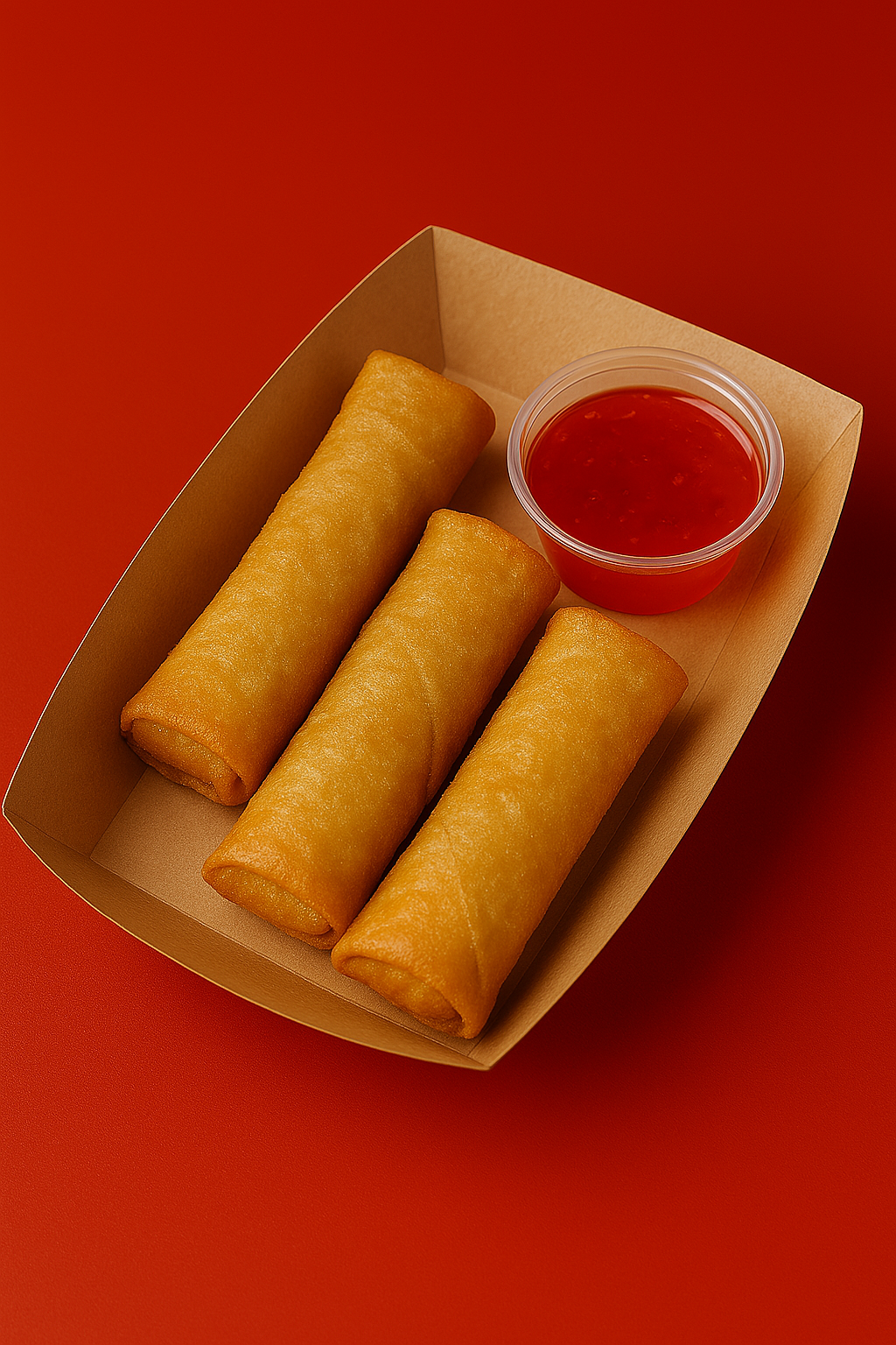 3 rollos primavera relleno con vegetales, acompañado con nuestra deliciosa salsa agridulce de la casa.