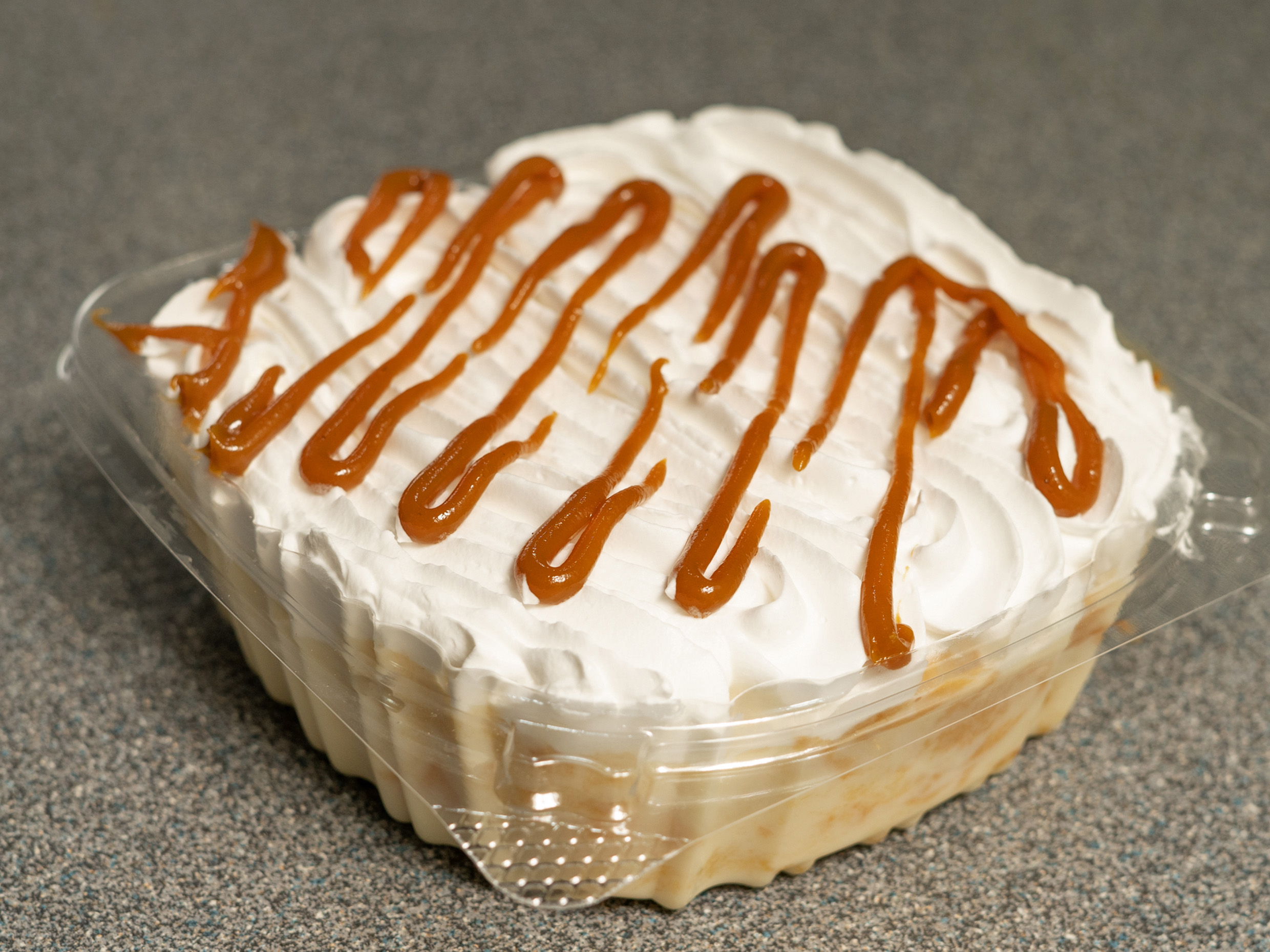 Queque de vainilla bañado en leche de tres leches con relleno de guayaba y dulce de leche con topping de vainilla y frutas de decoración . 12 personas