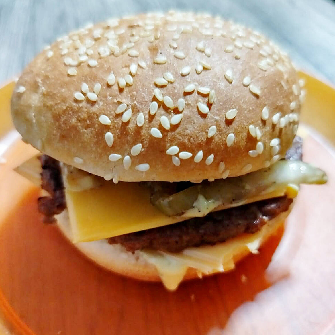 Deliciosa hamburguesa con cebolla grillada, salsa especial, y queso.
