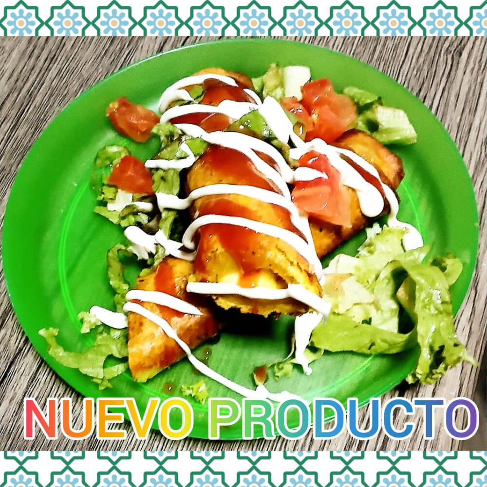 Flauta de delicioso Queso arreglado con lechuga y tomate