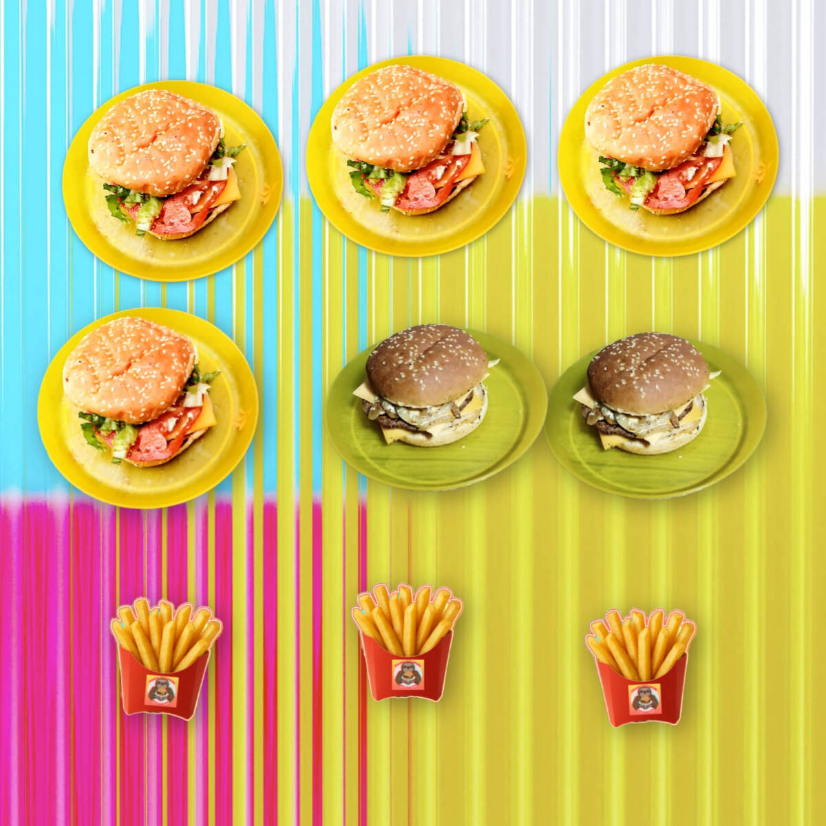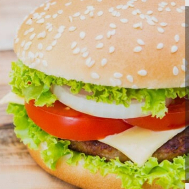 Hamburguesa con salsa especial, lechuga, tomate, cebolla caramelizada, y queso americano.