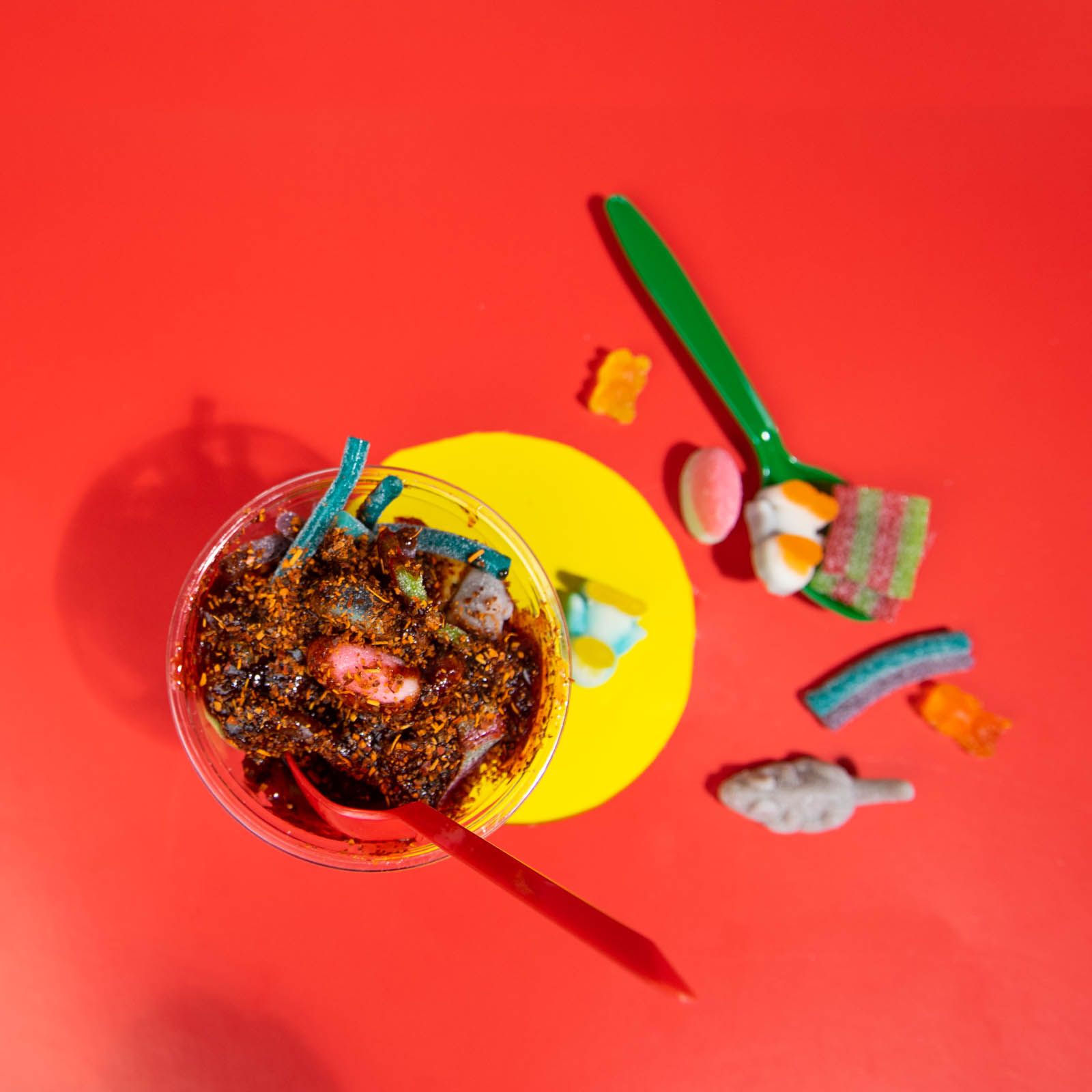 Mayonesa, queso parmesano, paprika, chile y Takis.