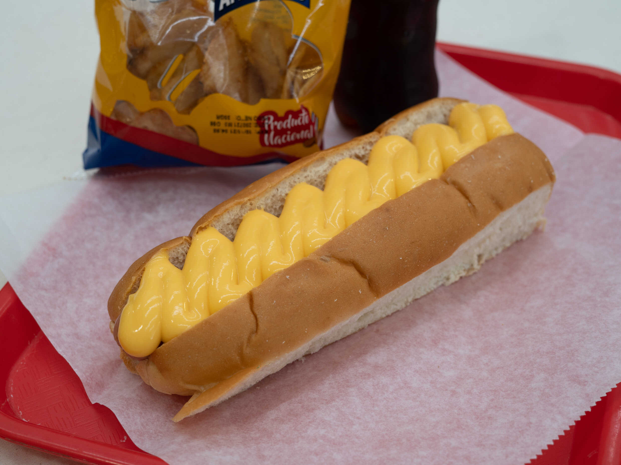 Incluye, salsa de queso . Acompañados de un refresco y papas.