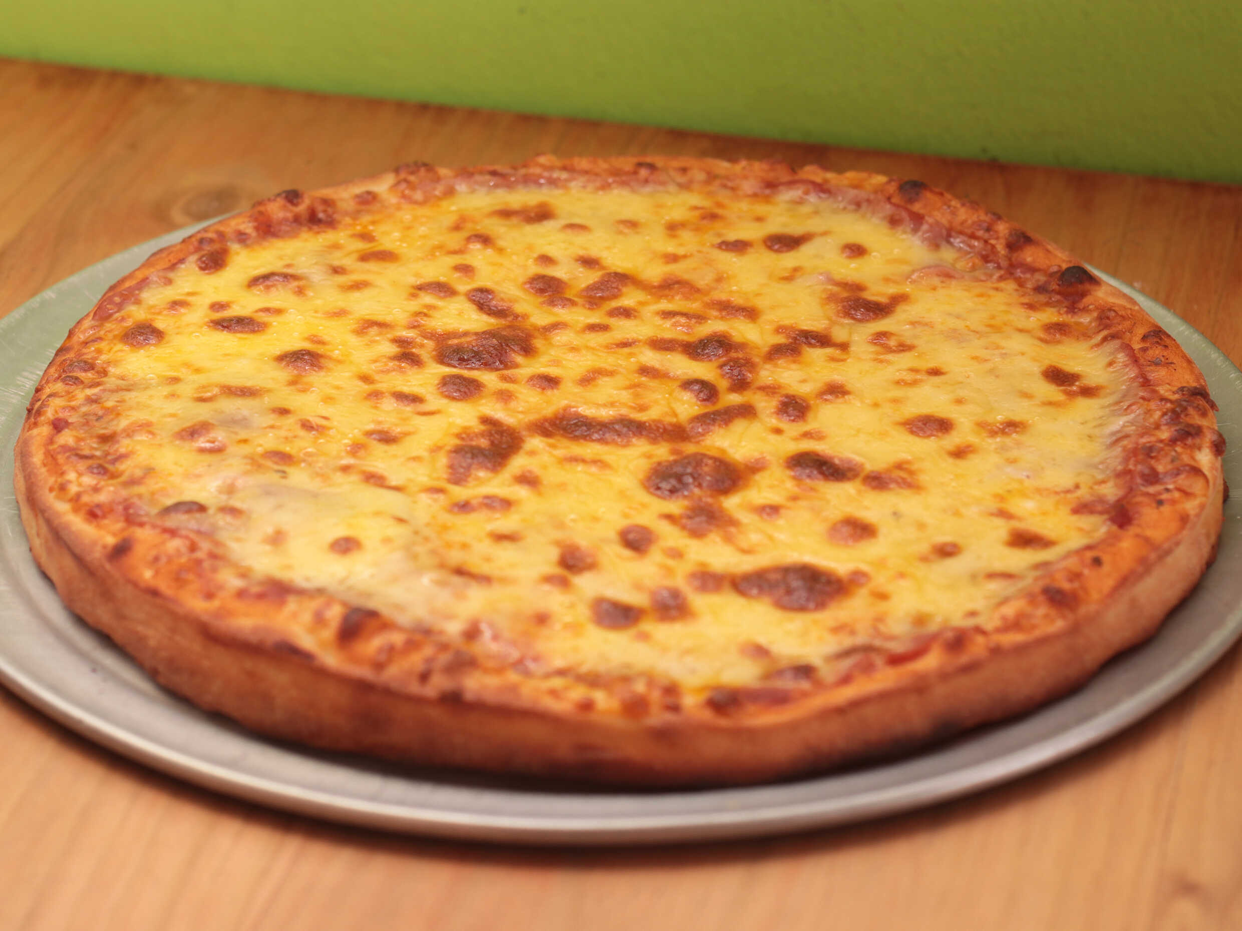 Queso, jamón, cebolla, chile dulce, tocineta, carne molida y salsa de pizza.