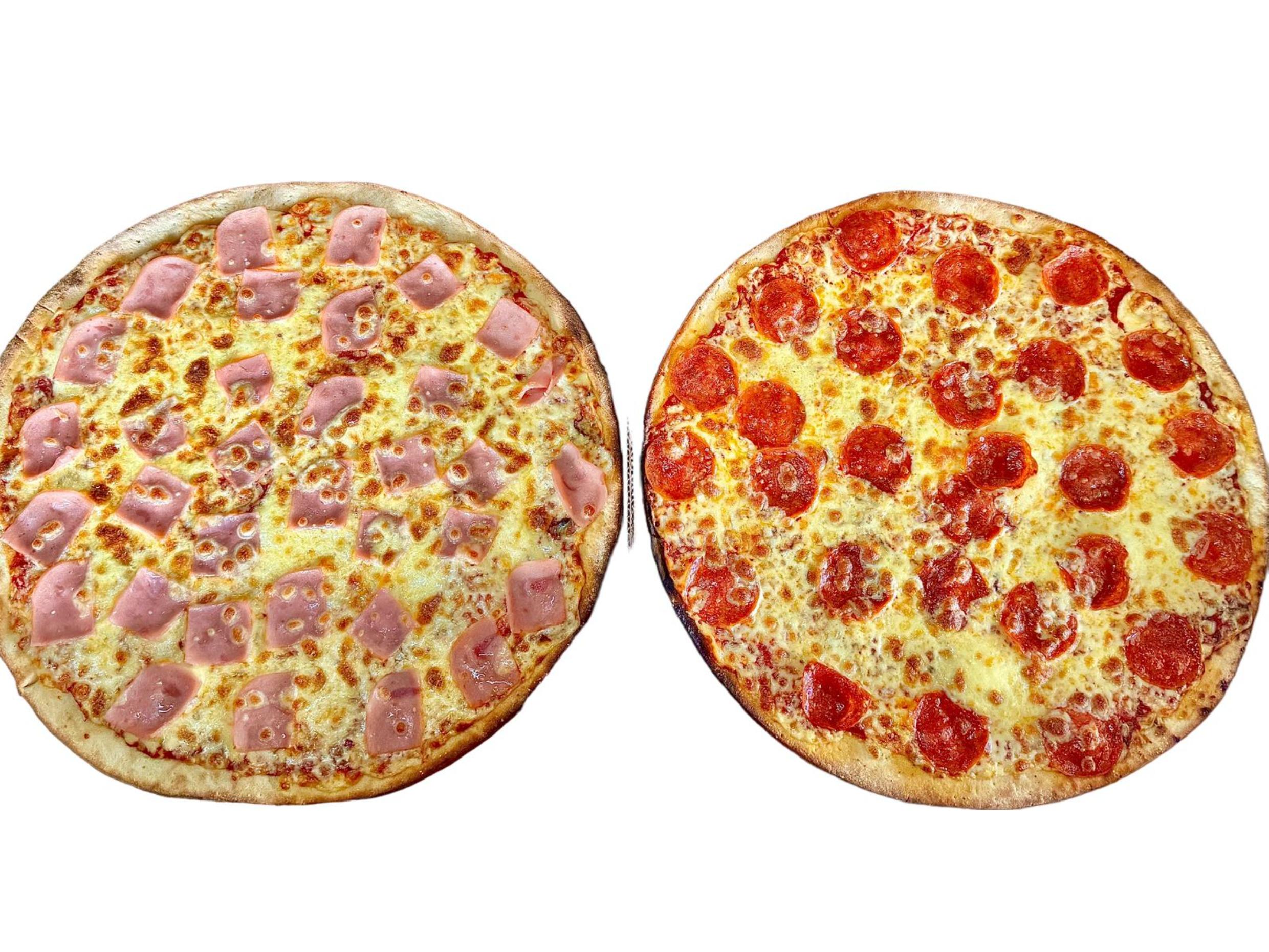 2 Pizzas de 12 porciones, 16 pulgadas a precio especial.