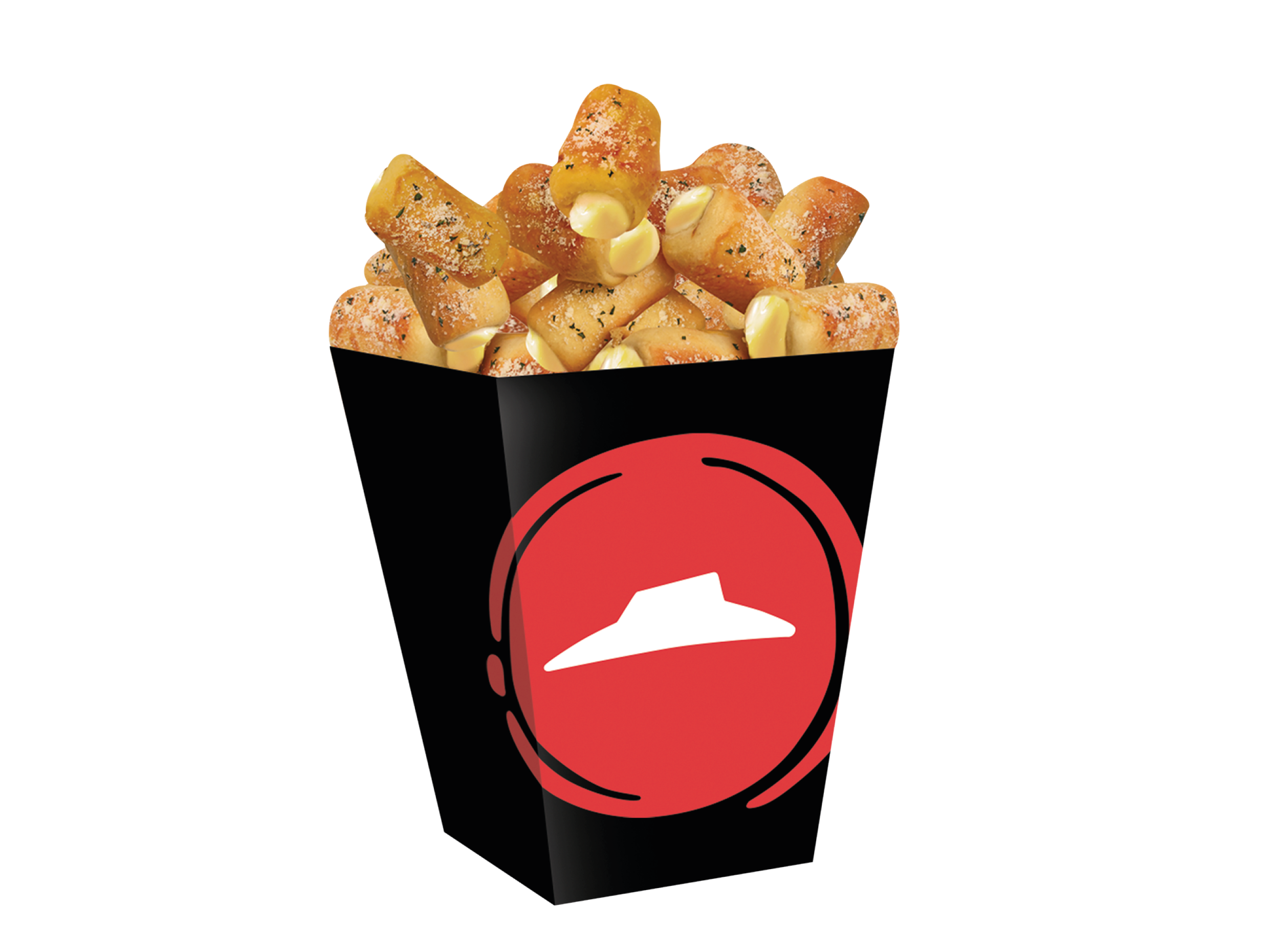 Crujientes Pops rellenos de queso mozzarella, cubiertos de especias, acompañados con salsa Breadstick.