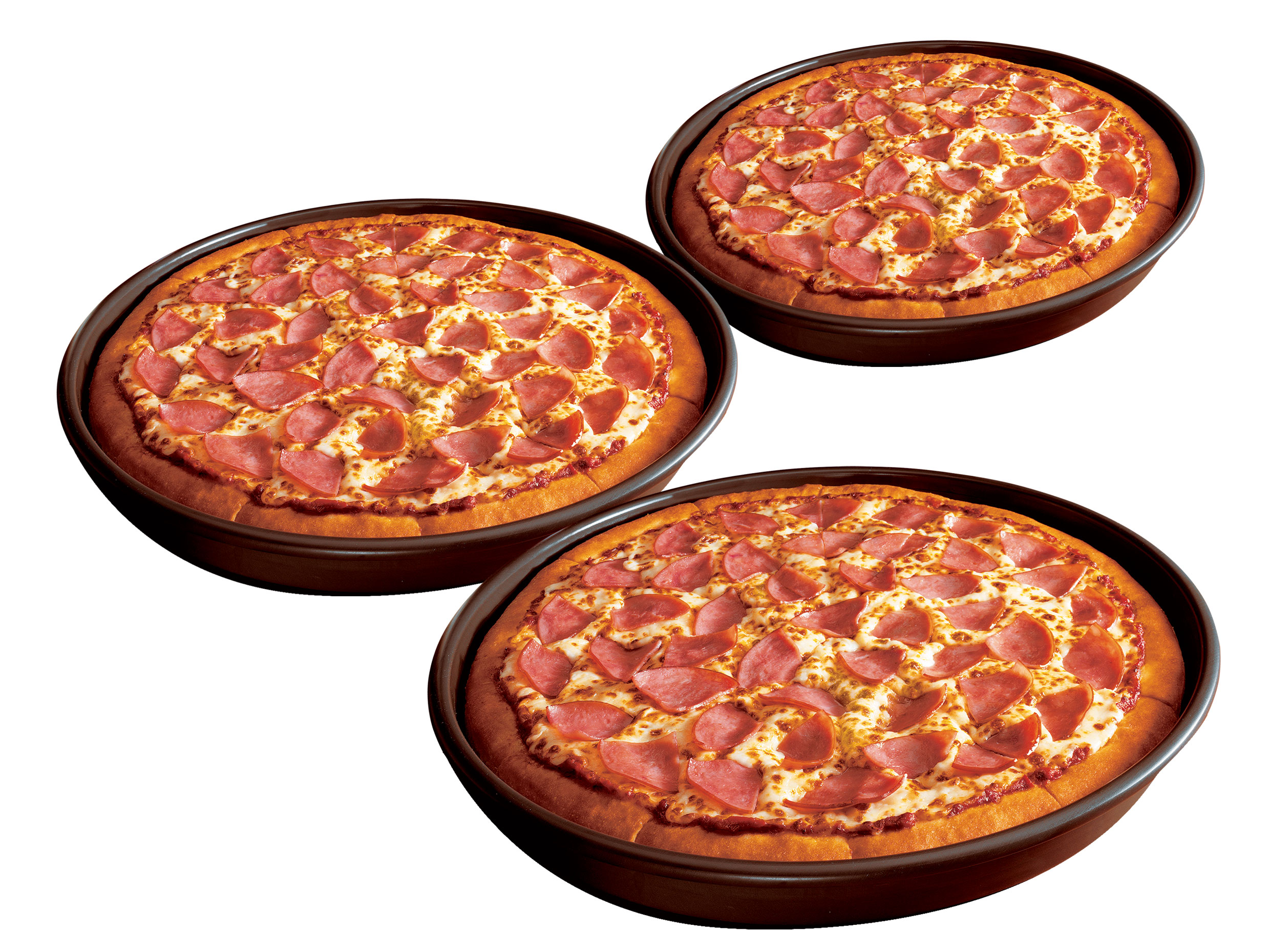 Disfruta de 3 deliciosas pizzas grandes 14". Sabor Jamón. Masa artesanal. 10 Slices.