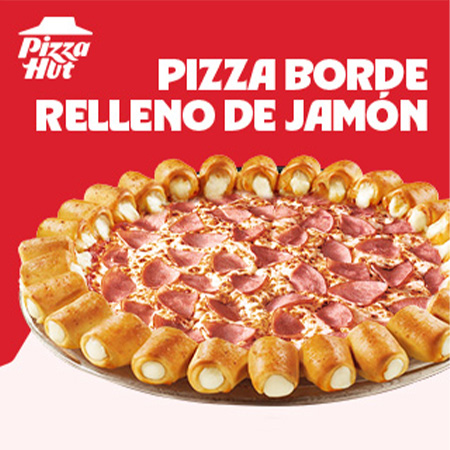 Pizza Grande de 10 slices de Jamón con borde cubierto de queso Cheddar.