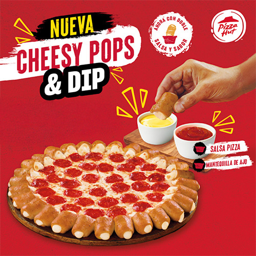 Tamaño grande. Hut Cheese: Borde relleno de delicioso queso fundido. Cheesy Pops: Pizza con poppers relleno de queso mozzarella.
