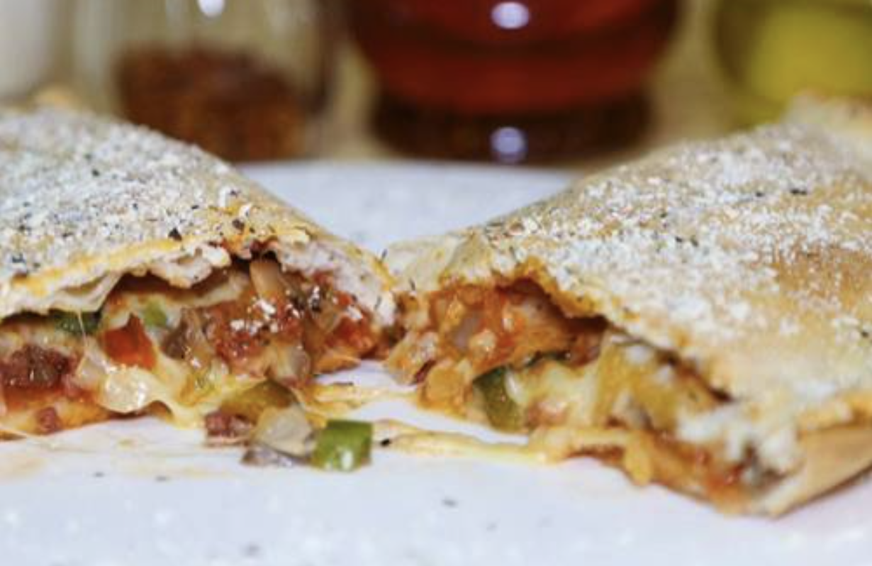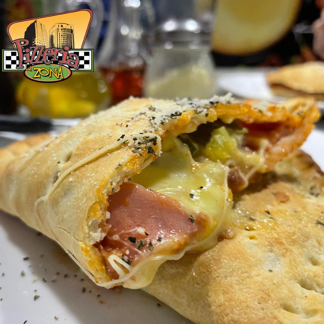 Salsa de pizza, jamón, cebolla, carne molida, queso mozzarella, chile jalapeño y tomate fresco.