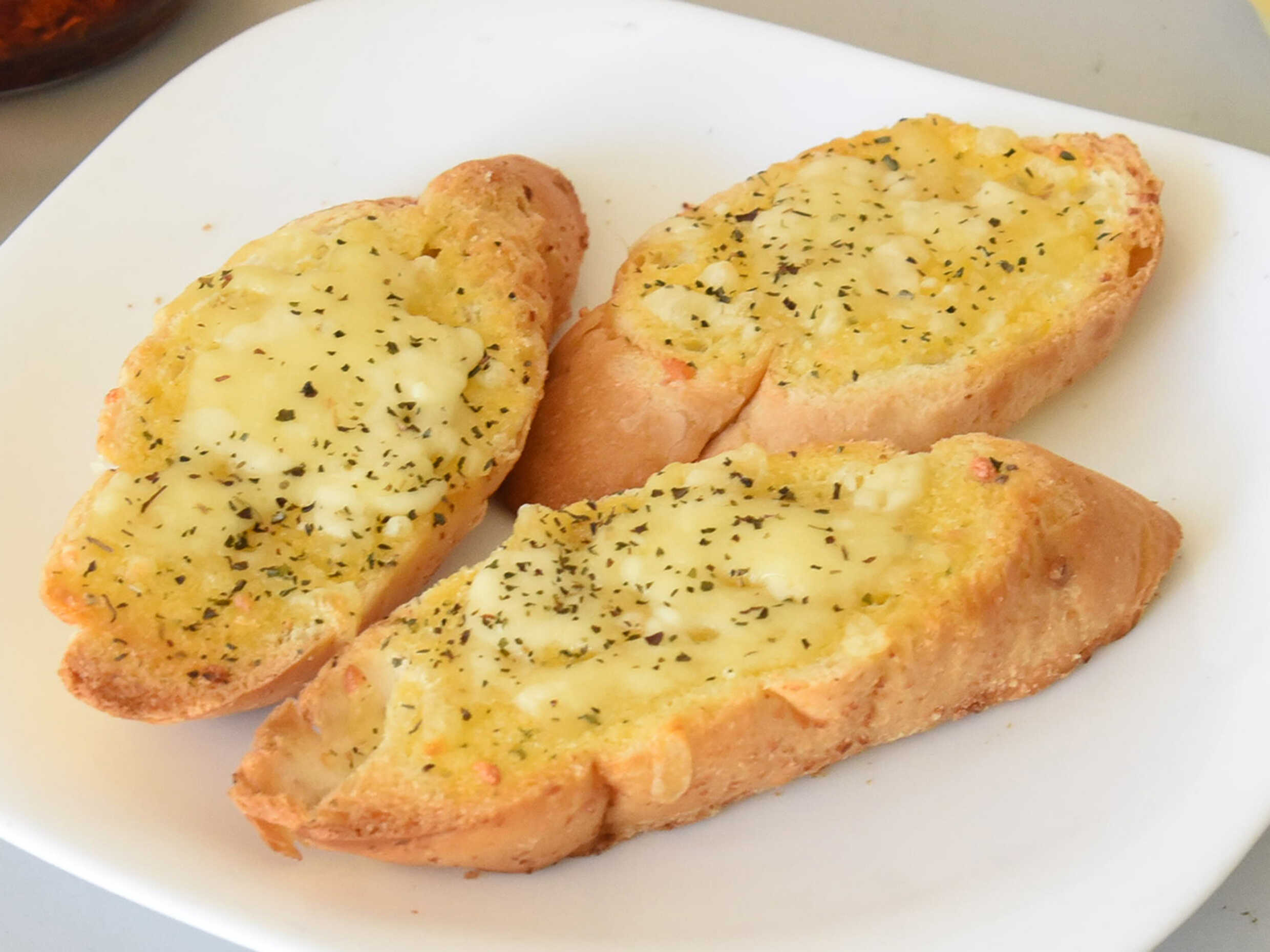 Mantequilla de ajo, cebolla, chile dulce, queso mozzarella, aceitunas y queso fresco, acompañada con limón y sal.
