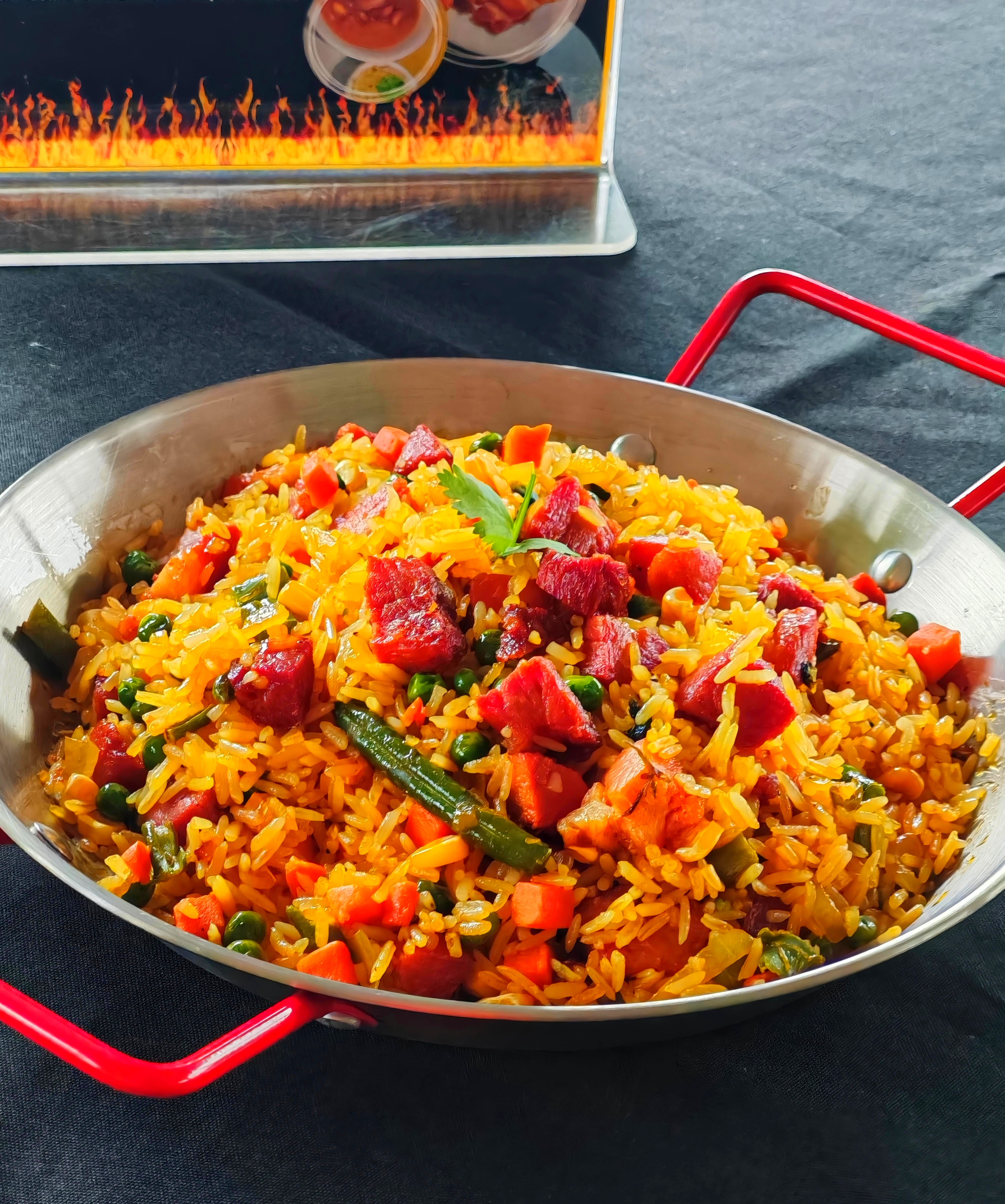 Orden grande de costilla asada, orden grande de chicharrones, crujientes patacones, tequeños, orden grande de frijolitos molidos con queso, ensalada criolla, tortillas de maíz, tortillitas chips, nuestra salsa bbq artesanal, aderezo ranch, limón y ají planet.