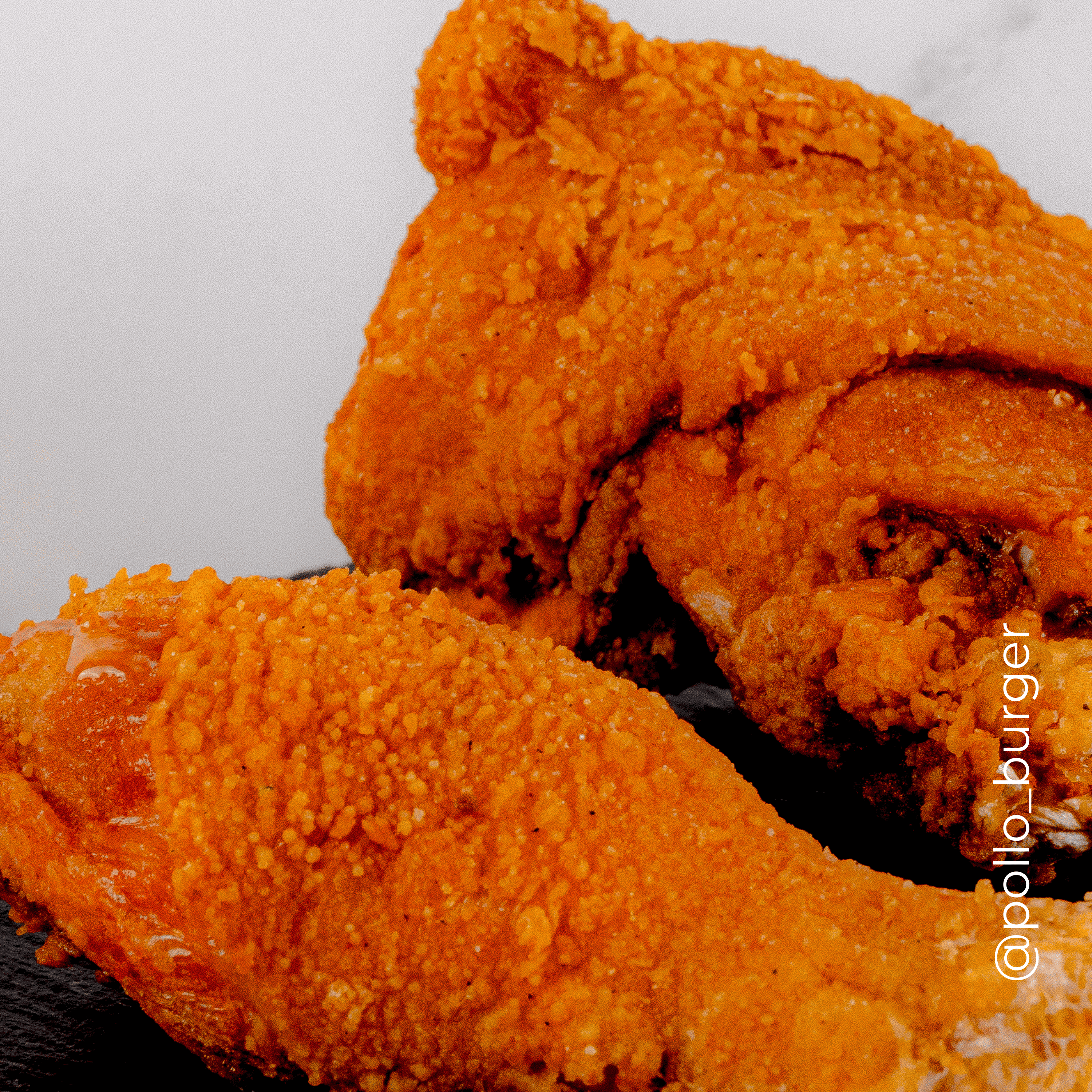 Porción de pollo frito, pechuga y ala.