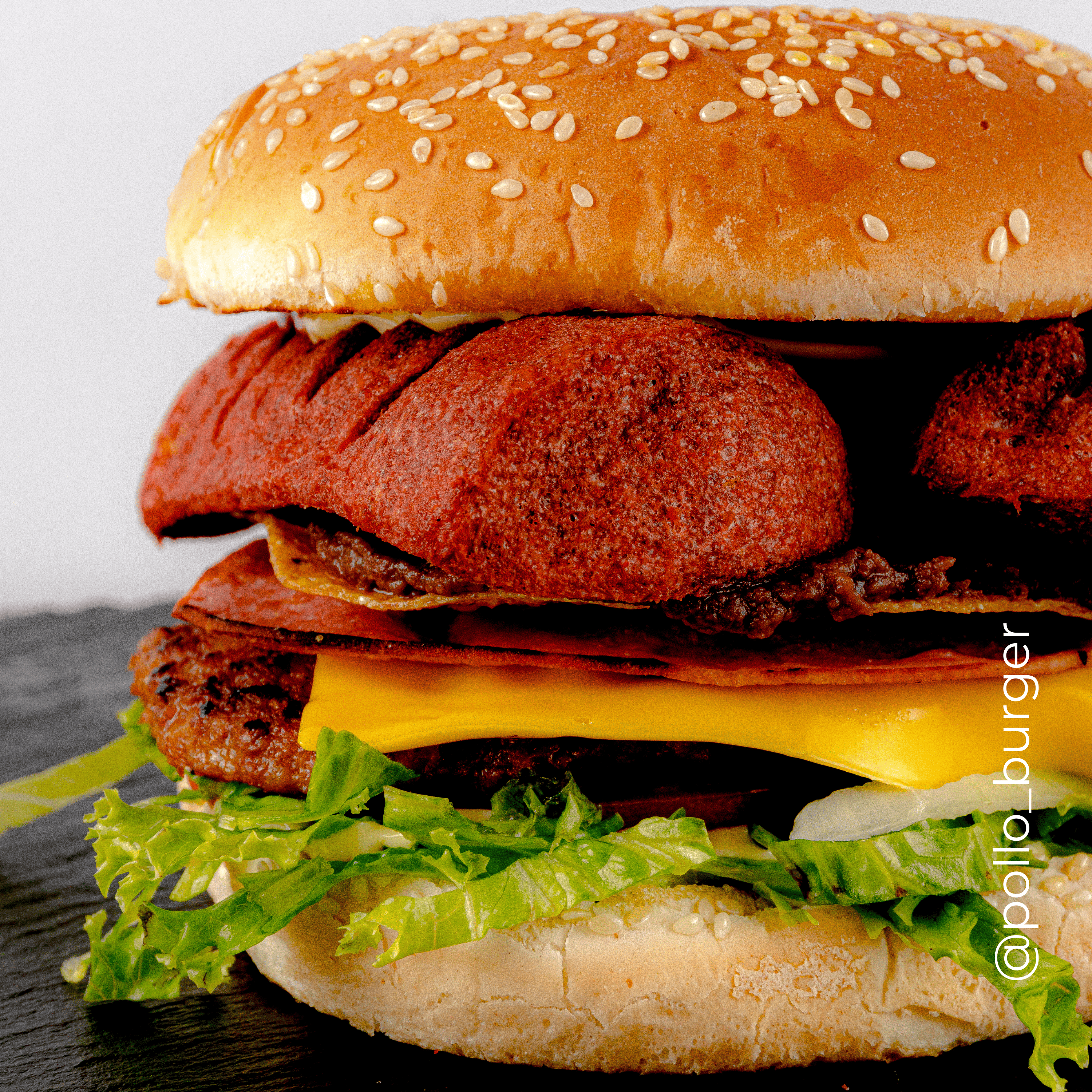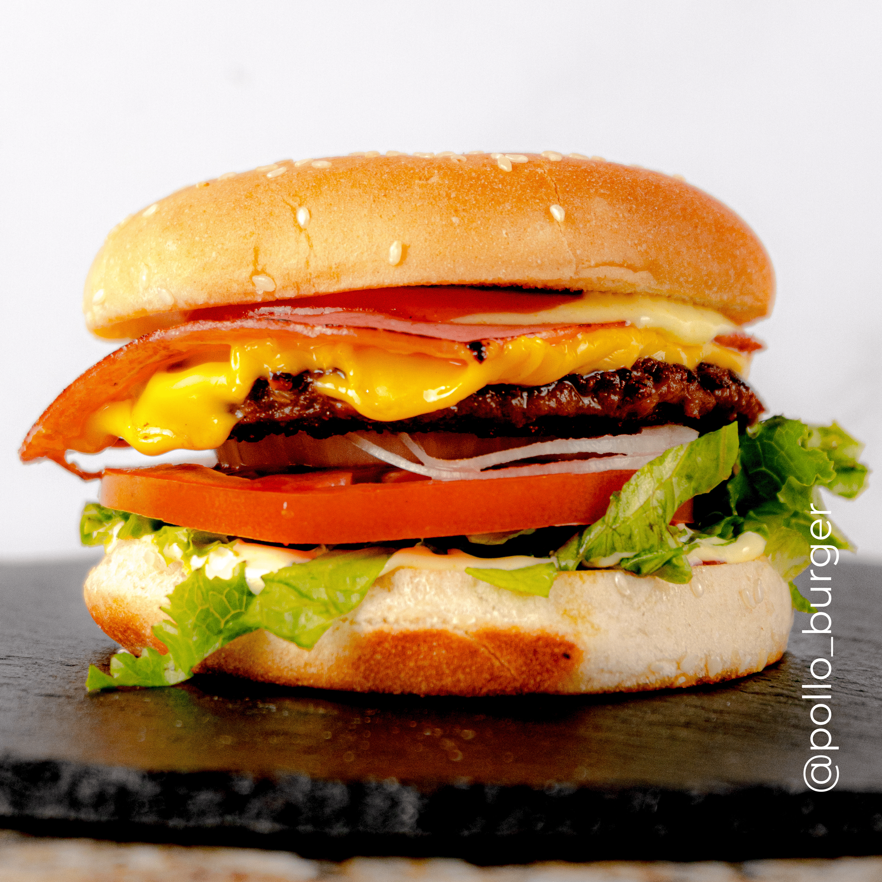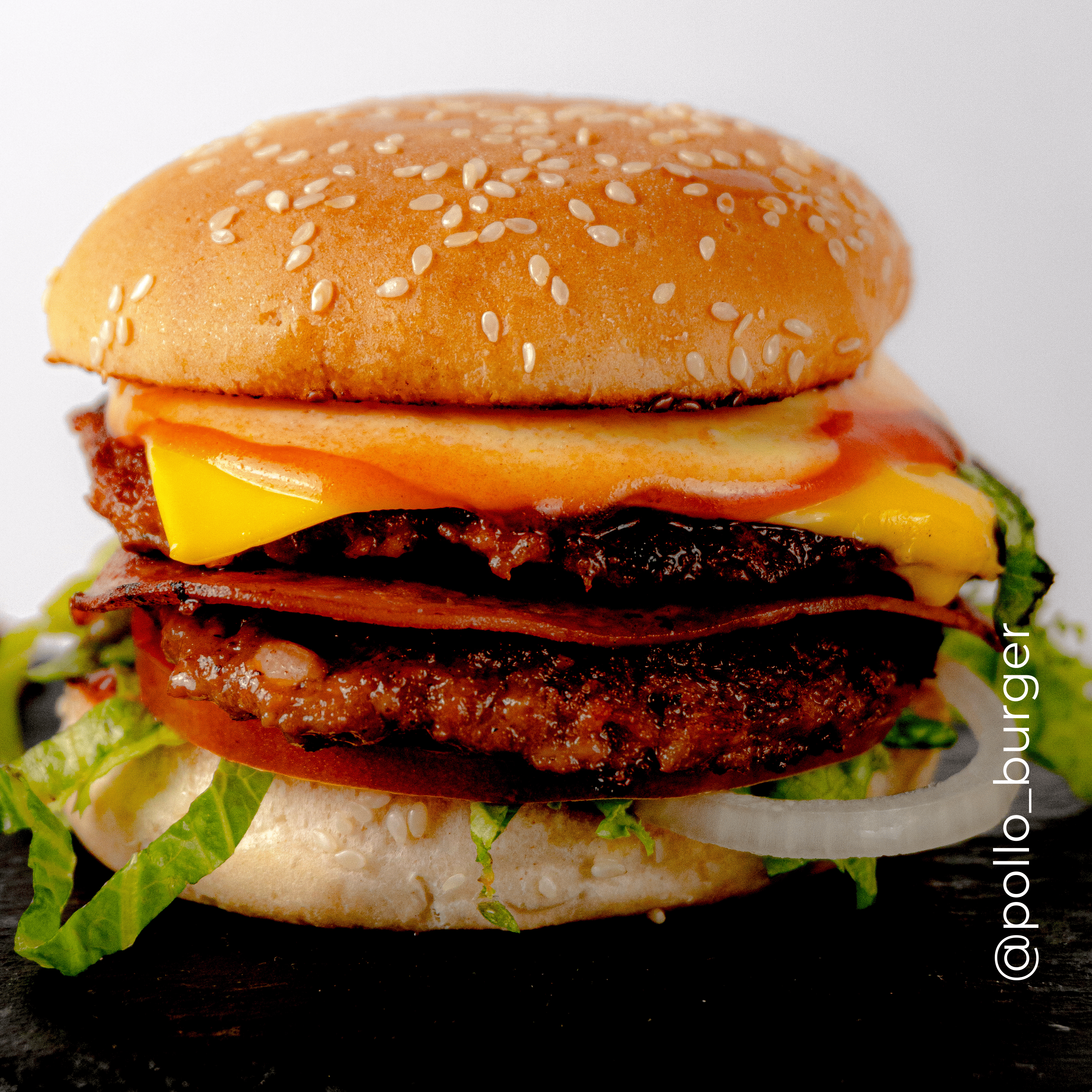 Hamburguesa doble con 2 tortas, queso, jamón, lechuga, tomate, cebolla y salsas.
