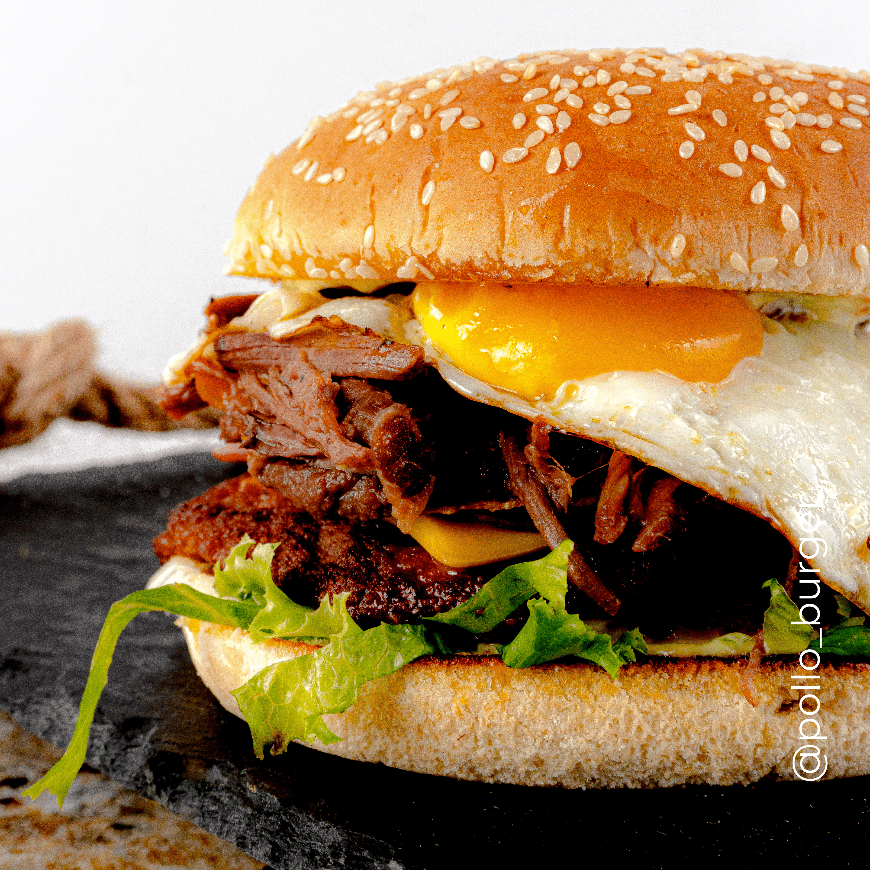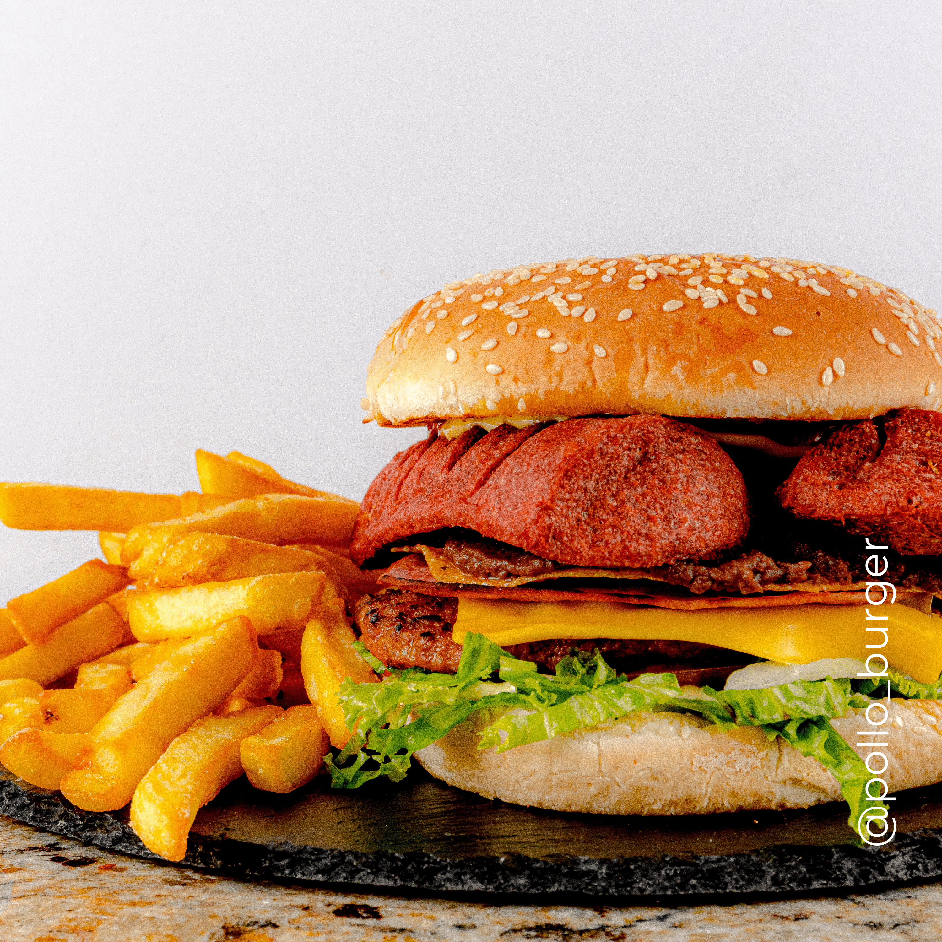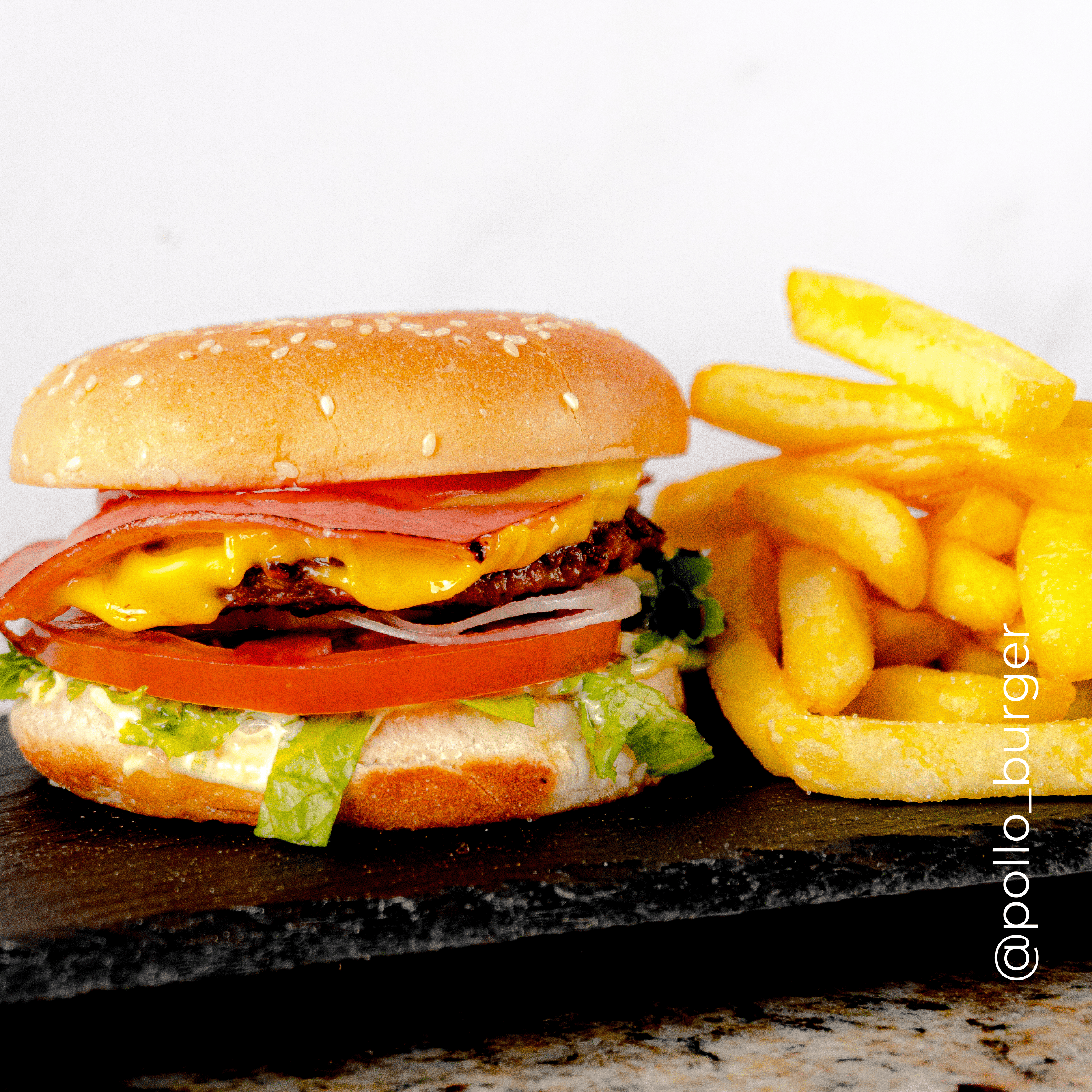 Hamburguesa doble con 2 tortas, queso, jamón, lechuga, tomate, cebolla y salsas.