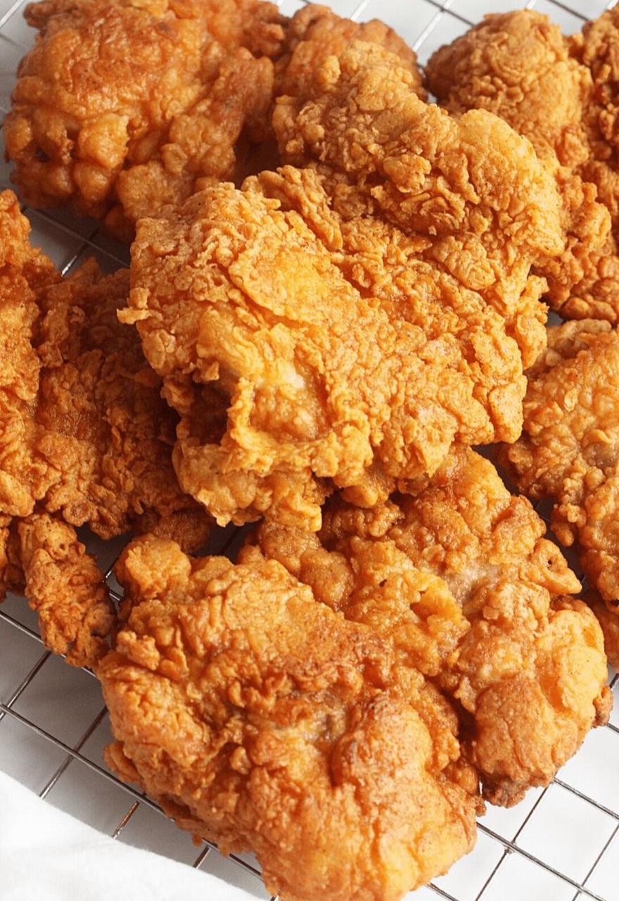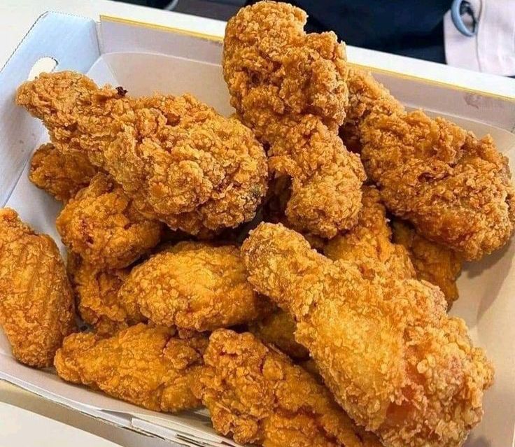 8 piezas de pollo frito, 2 pechugas, 2 alas, 2 caderas y 2 muslos.
