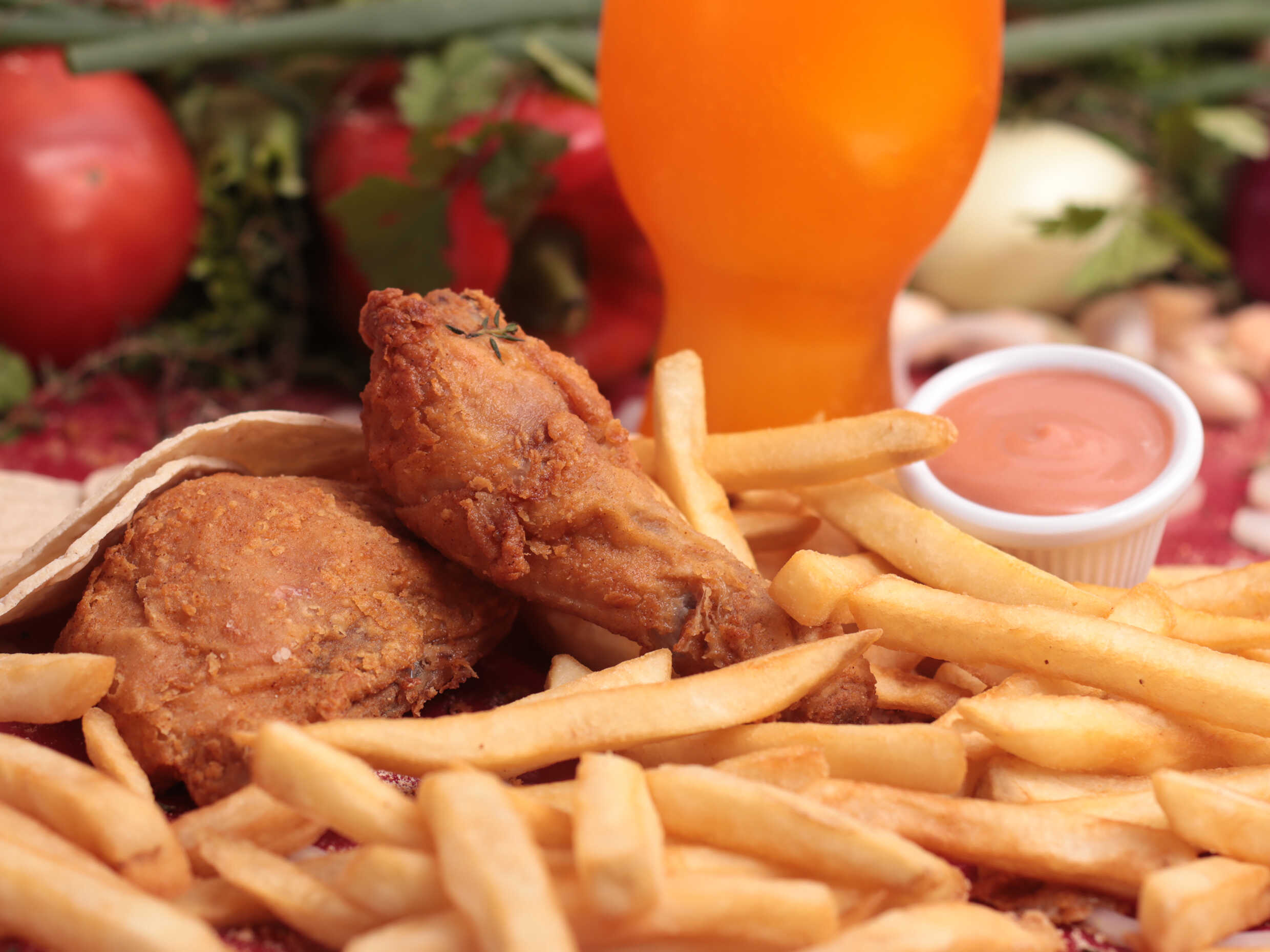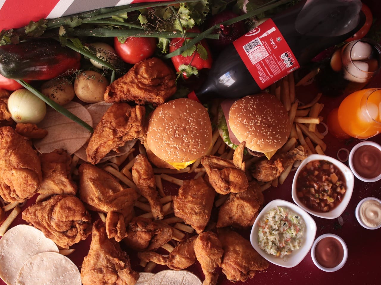 4 Piezas de Pollo (1 muslo, 1 cuarto, 1 pechuga y 1 ala)+ Una porción de Papas Fritas a la Francesa + Gaseosa de 600ml