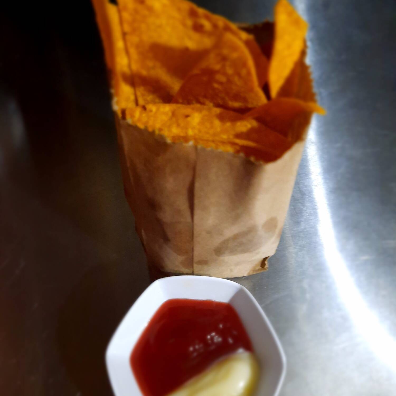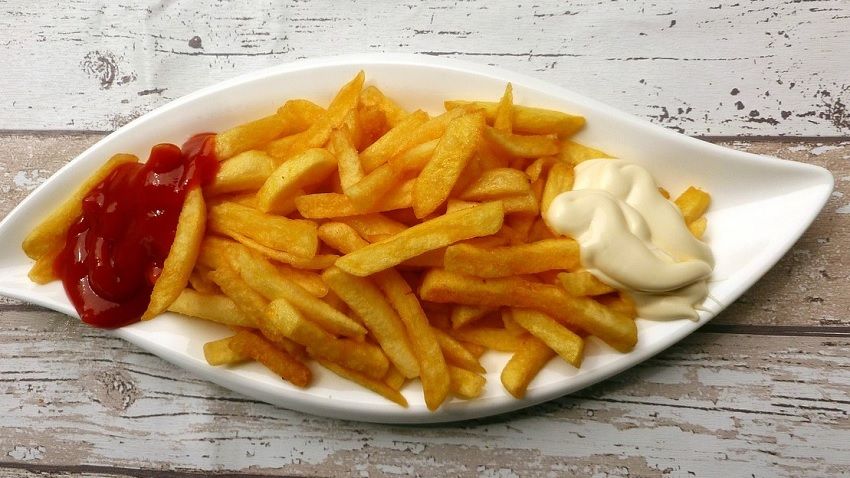 Papas fritas con salsa de tomate y mayonesa. 200 grs
