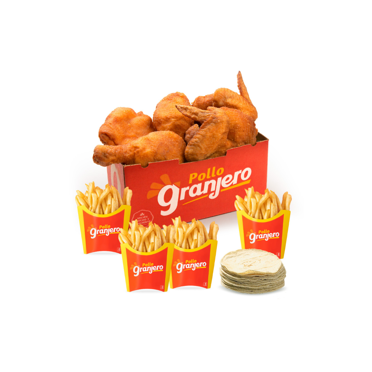 4 Piezas de Pollo + 2 Papas + 4 Tortillas