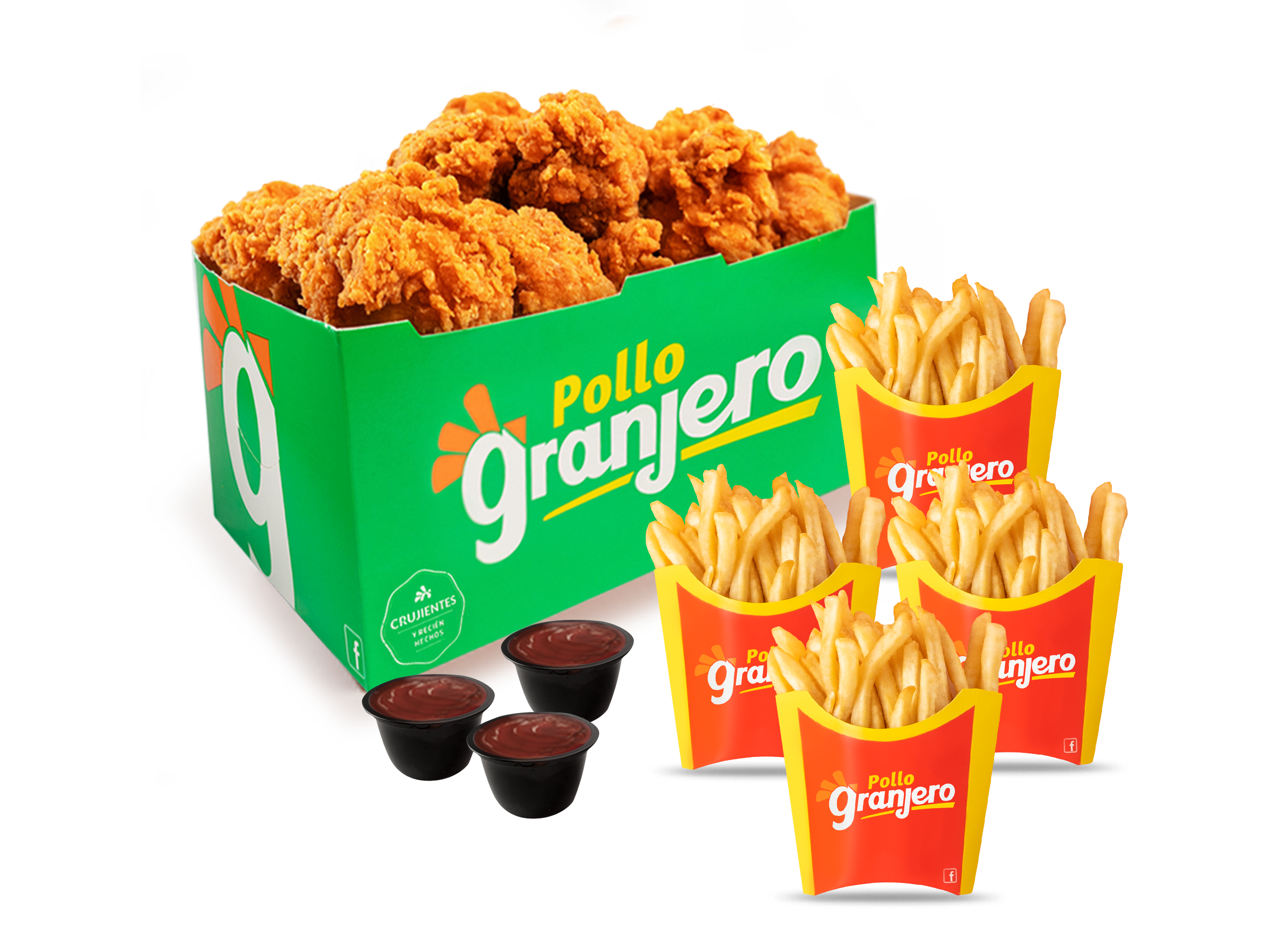 Disfruta la pasión del futbol con un banquete de 20 medallones +20 Crujitrozos + 5 papas pequeñas + 5 salsas BBQ.