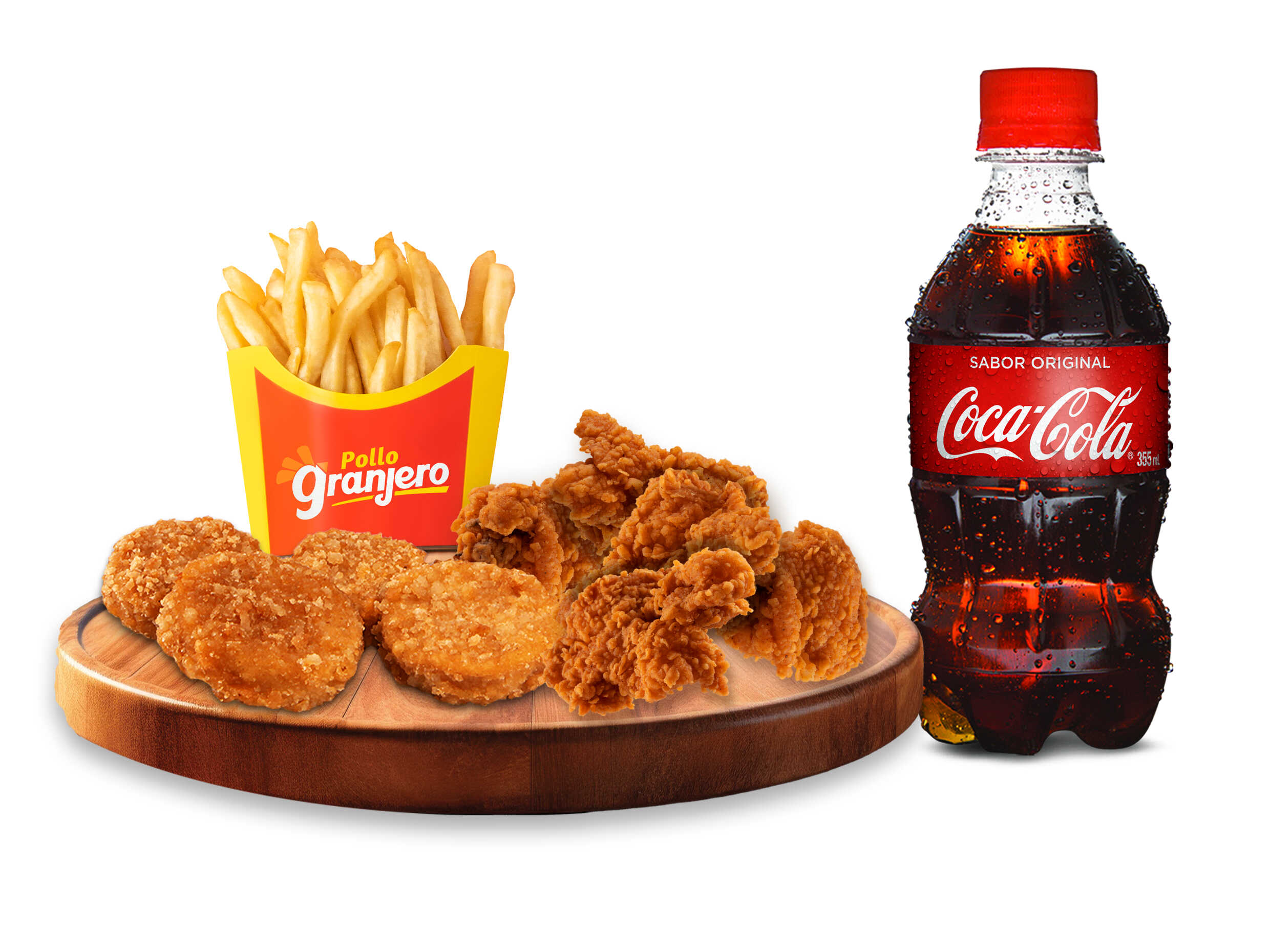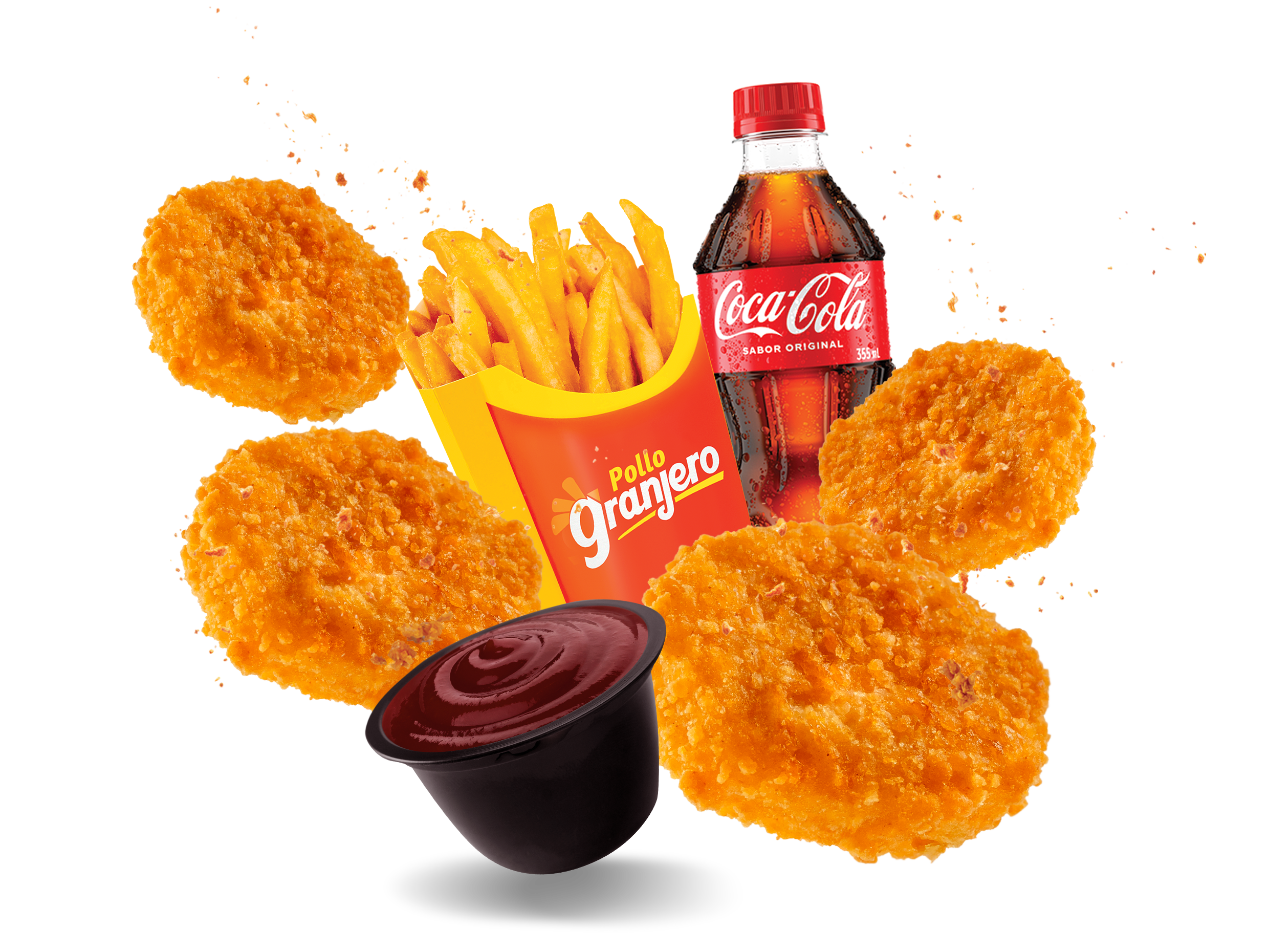 Disfruta 6 deliciosos nuggets, 1 papa pequeña, 1 salsa a elección y Coca Cola 355ML.