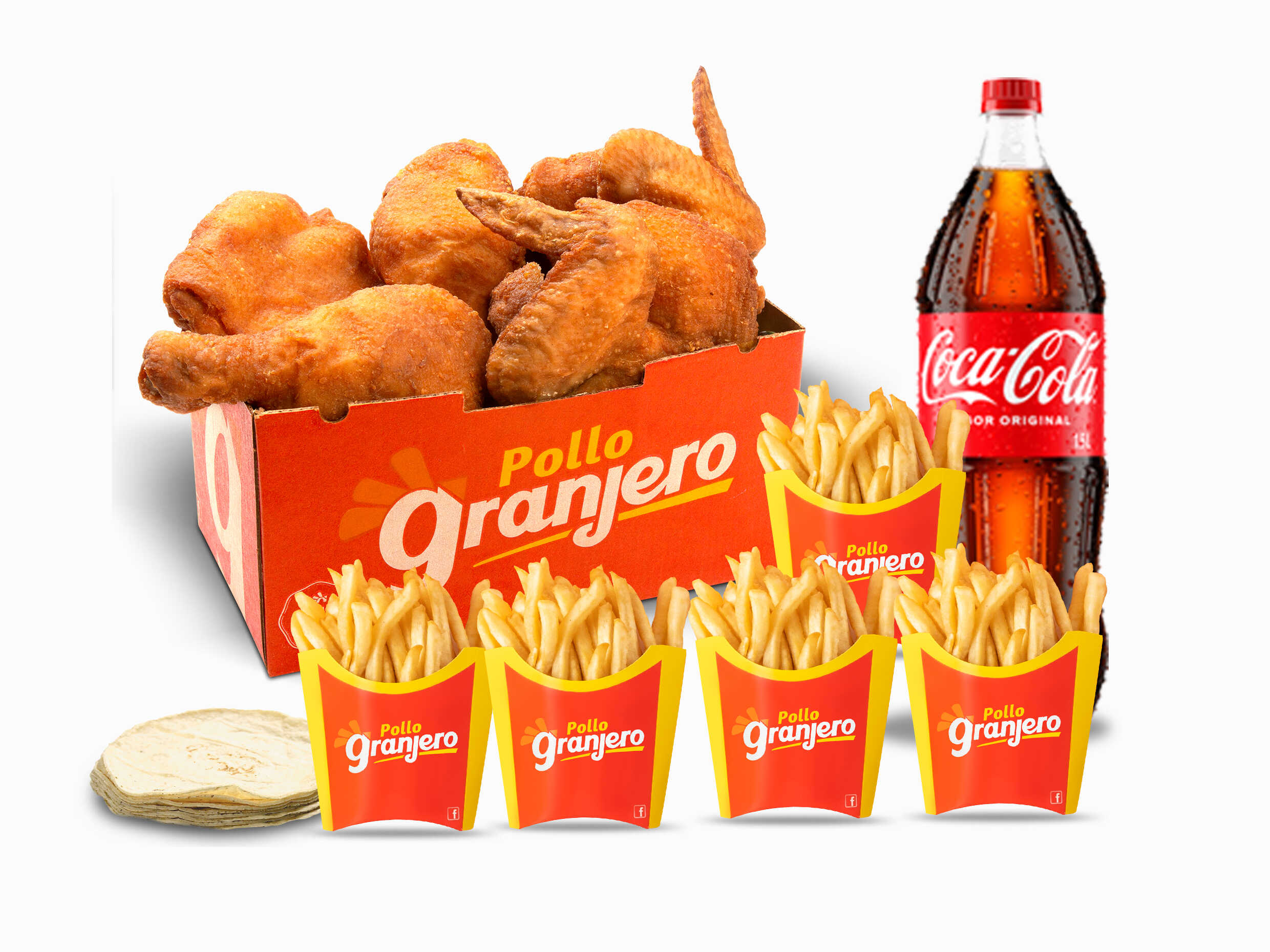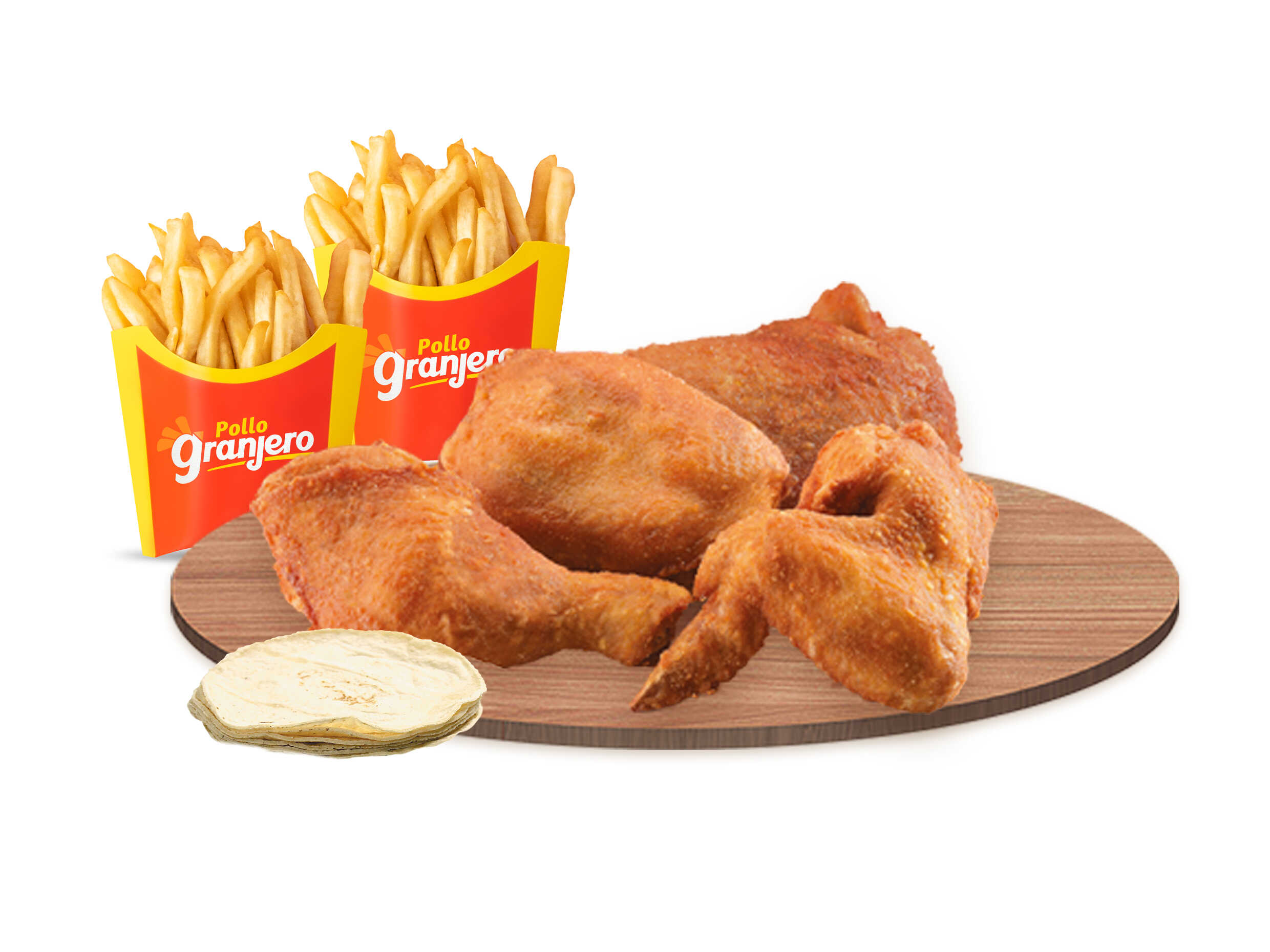 4 Piezas de Pollo + 2 Papas + 4 Tortillas