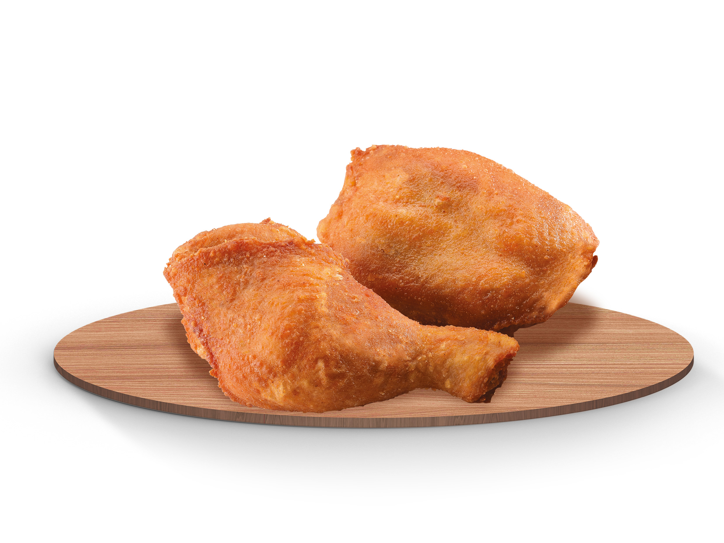 Cuarto y muslo de pollo jugosos y bien dorados, preparados al estilo tradicional, ideales para disfrutar con tus acompañamientos favoritos.