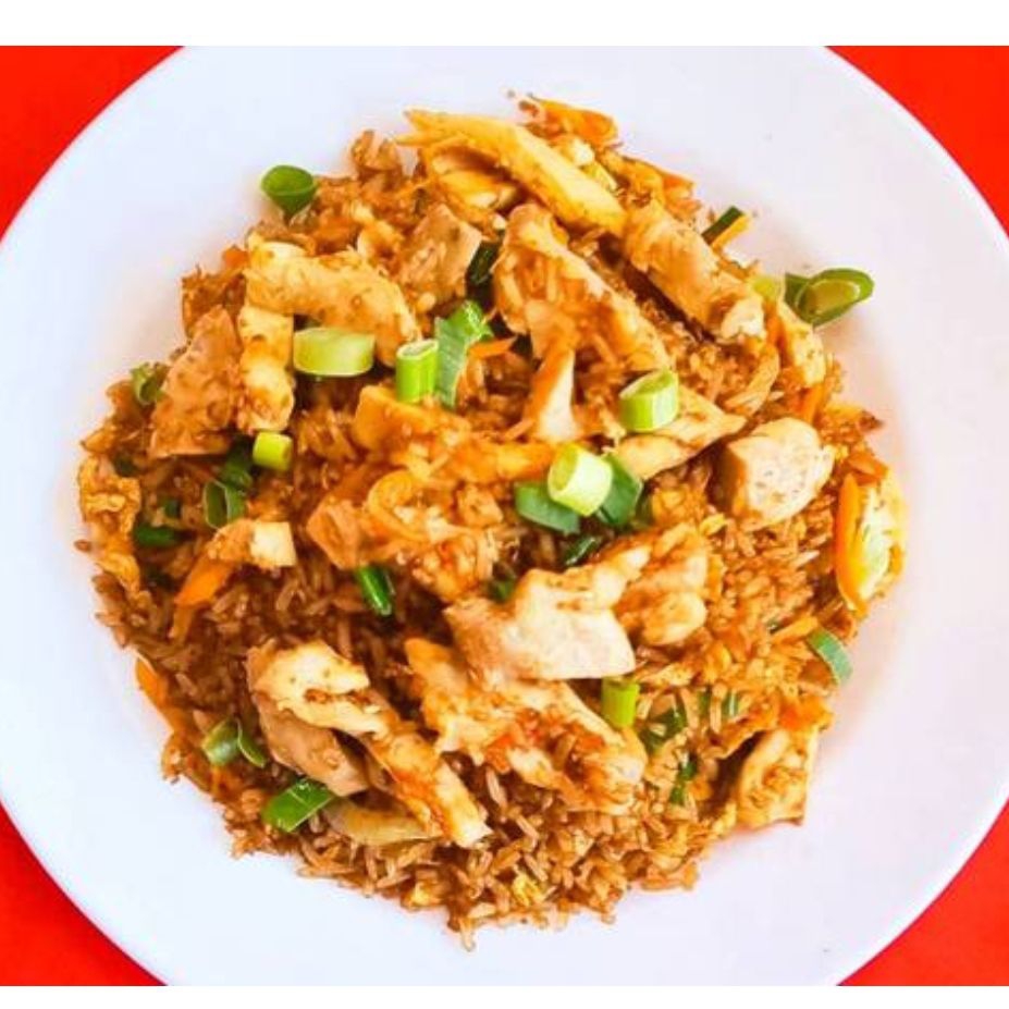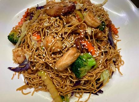 Delicioso chop suey en salsa con vegetales, pollo, lechón y jamón.