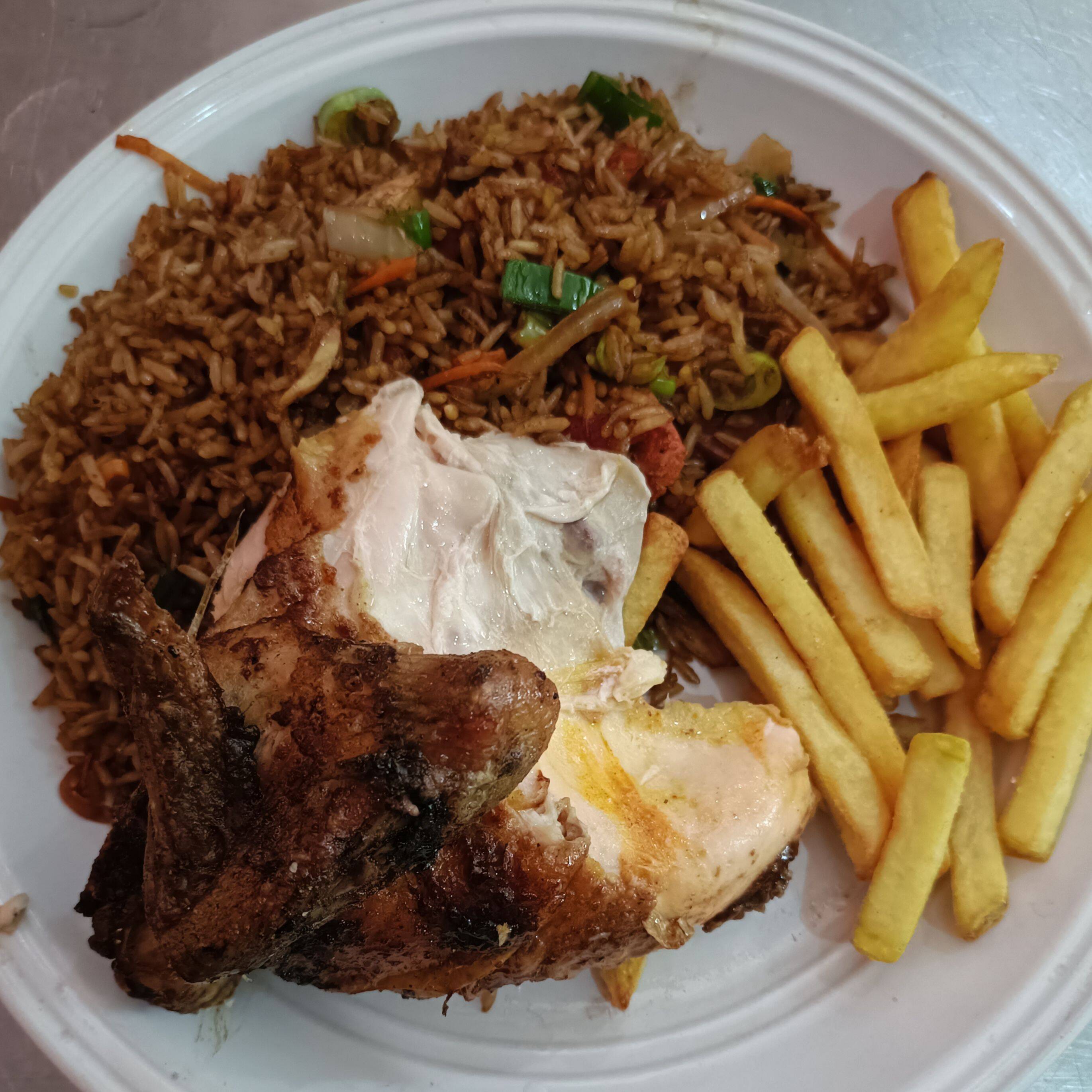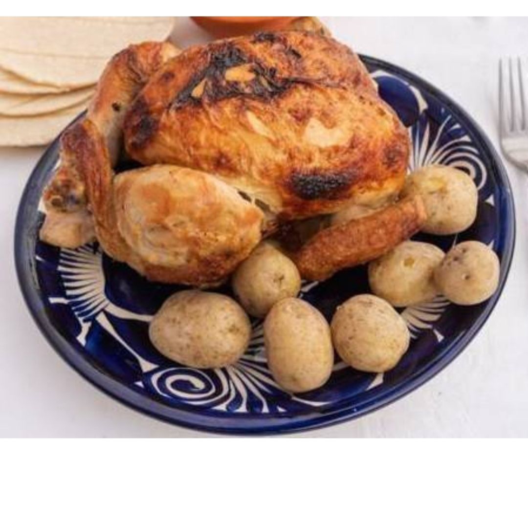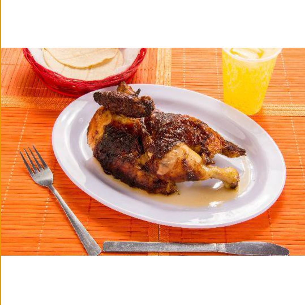 Delicioso 1/4 de pollo asado, papas y tortillas.