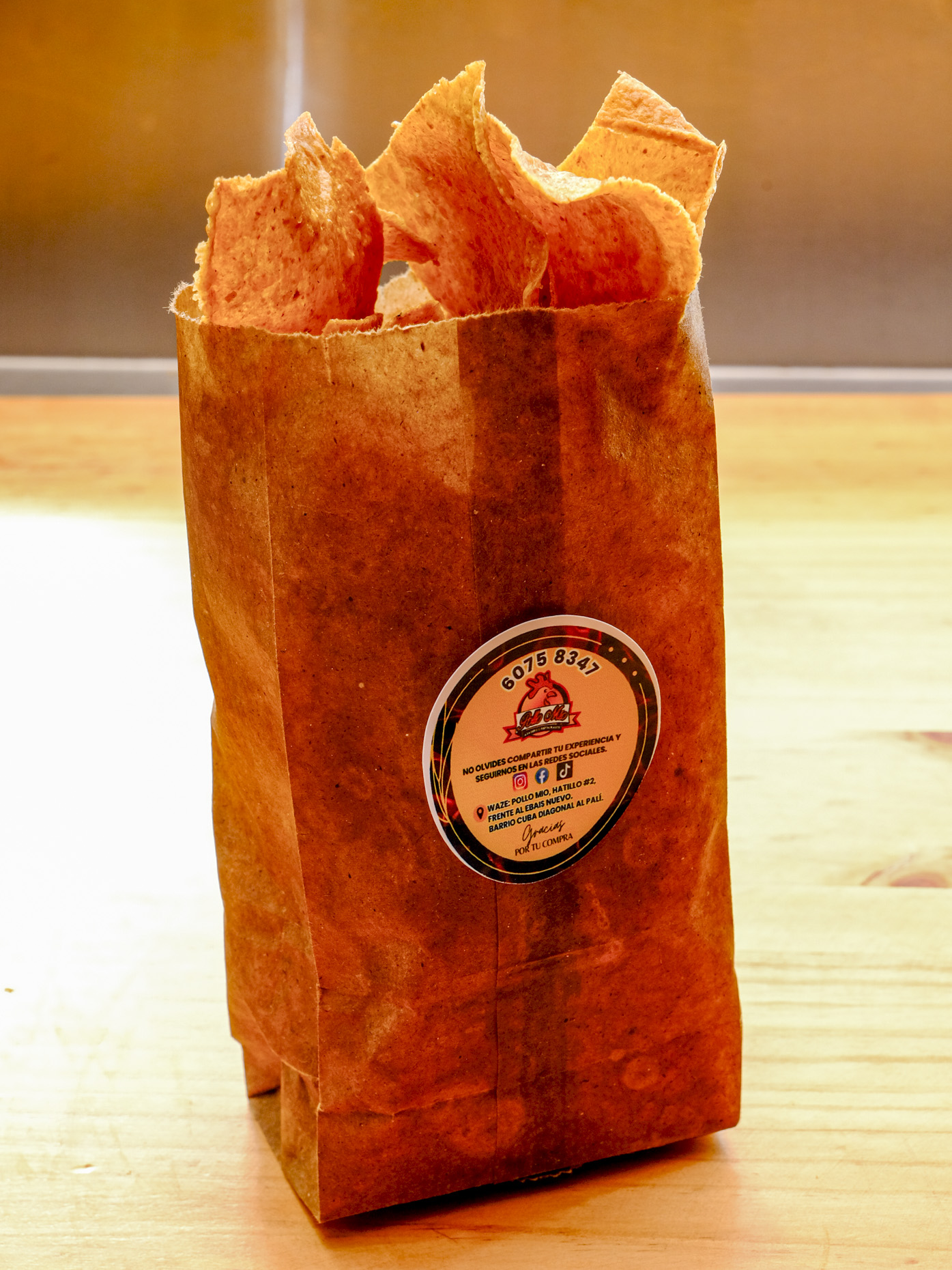 Paquetes de doraditas, tortilla de maíz fritas con salsa de tomate con mayonesa.