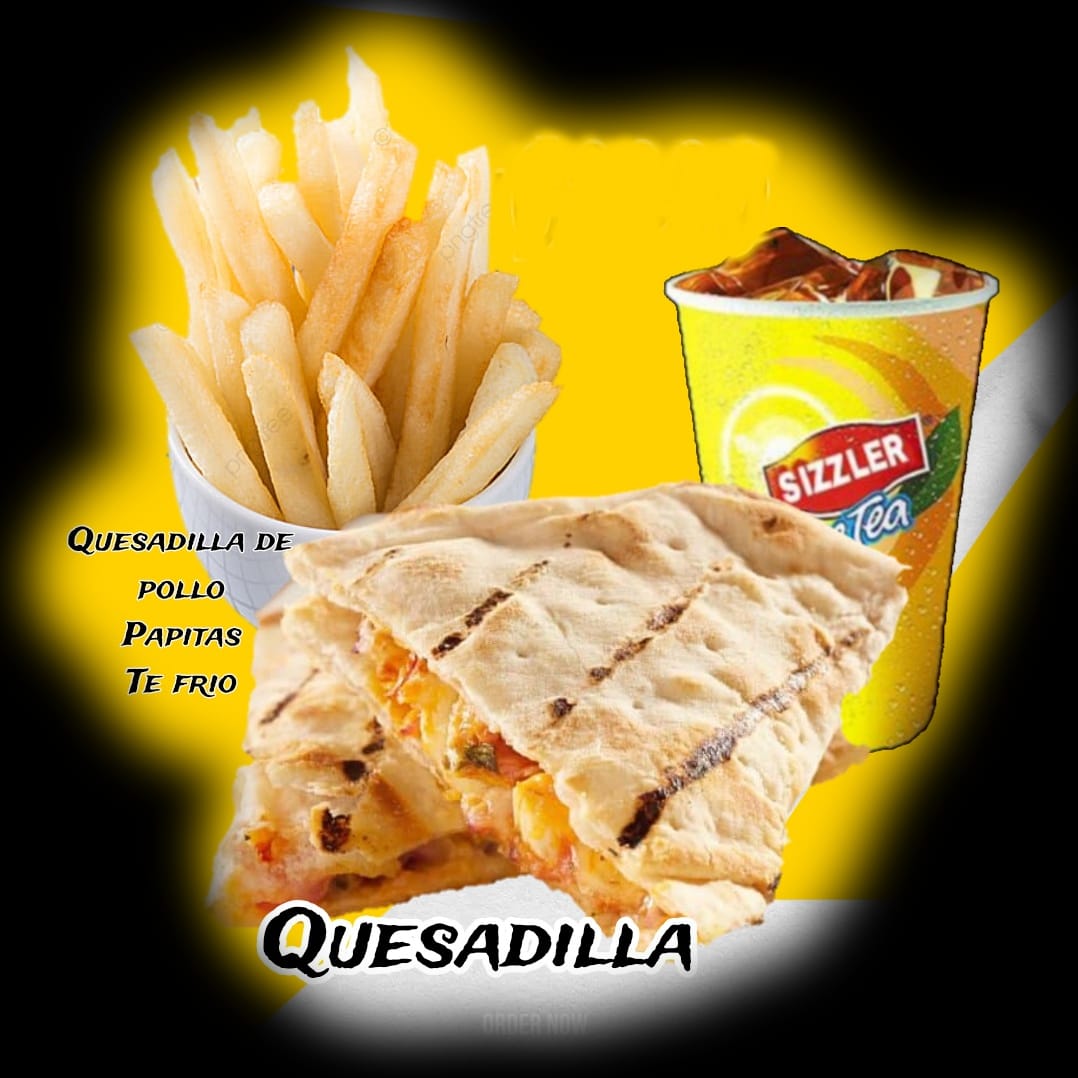 Deliciosa quesadilla de la casa con pollo + papas+ coca cola 250.