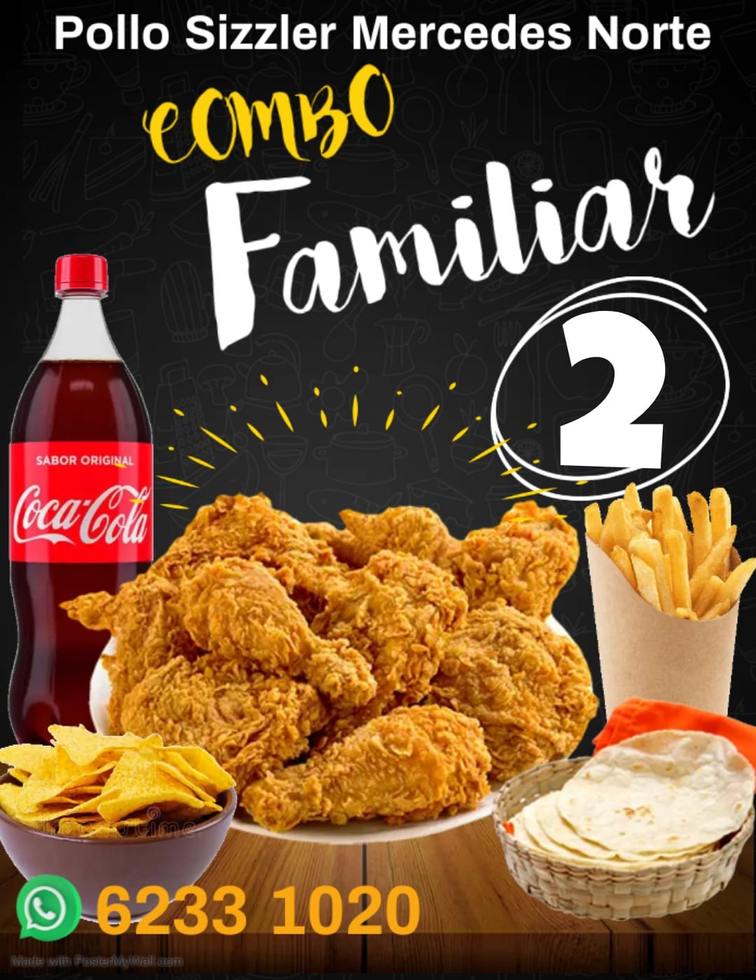 2 Pechugas, 2 alas, 2 muslos y 2 caderas de delicioso pollo frito crispy.