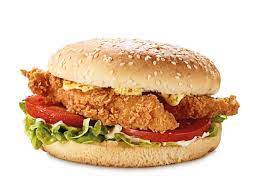 Torta de filete de pechuga de pollo empanizada con lechuga, tomate y mayonesa.