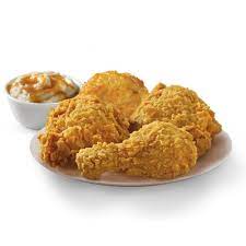 2 Muslos y 1 cadera de delicioso pollo frito crispy.