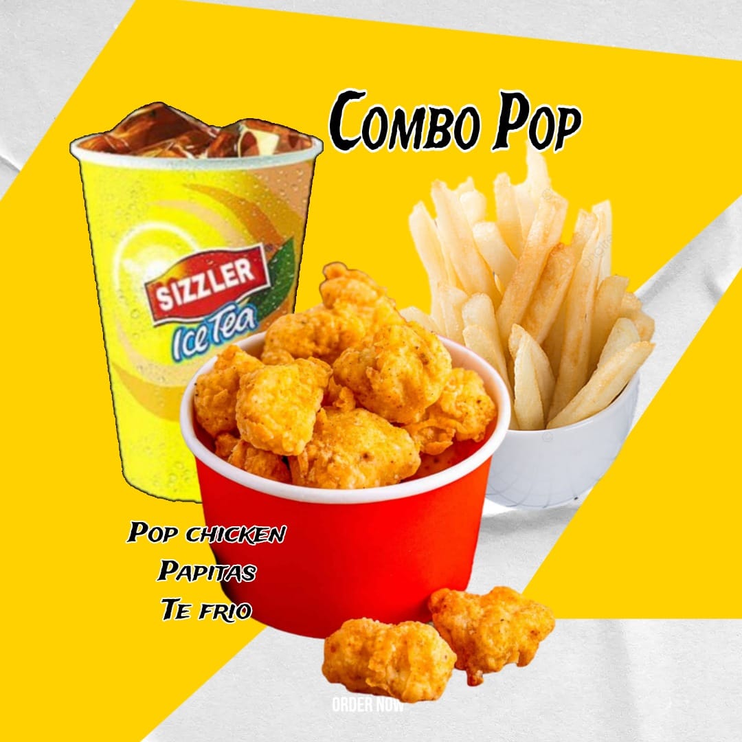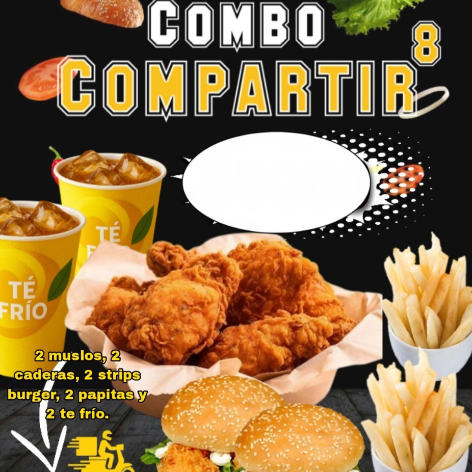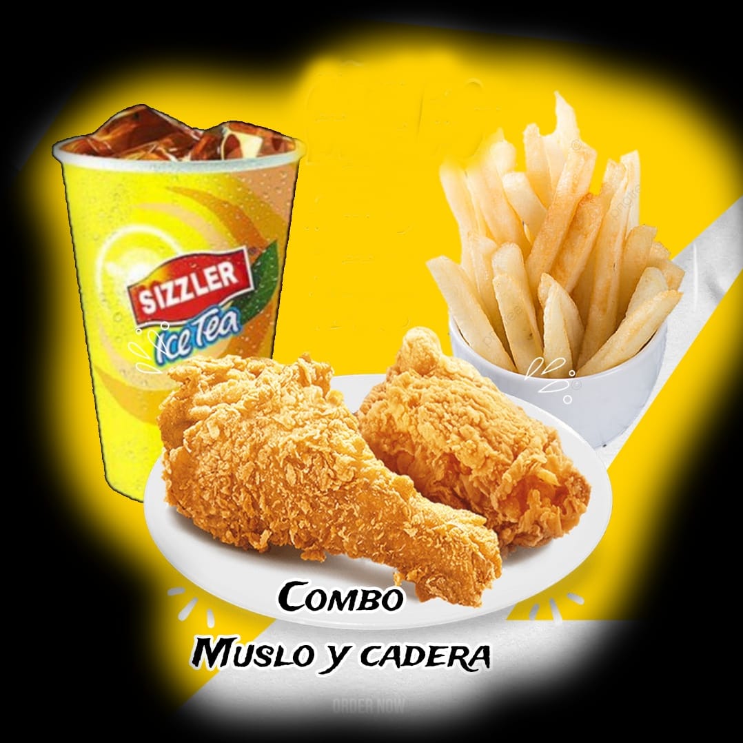 2 muslos +2 caderas +2 strips burger +2 papitas fritas + 2 te frio