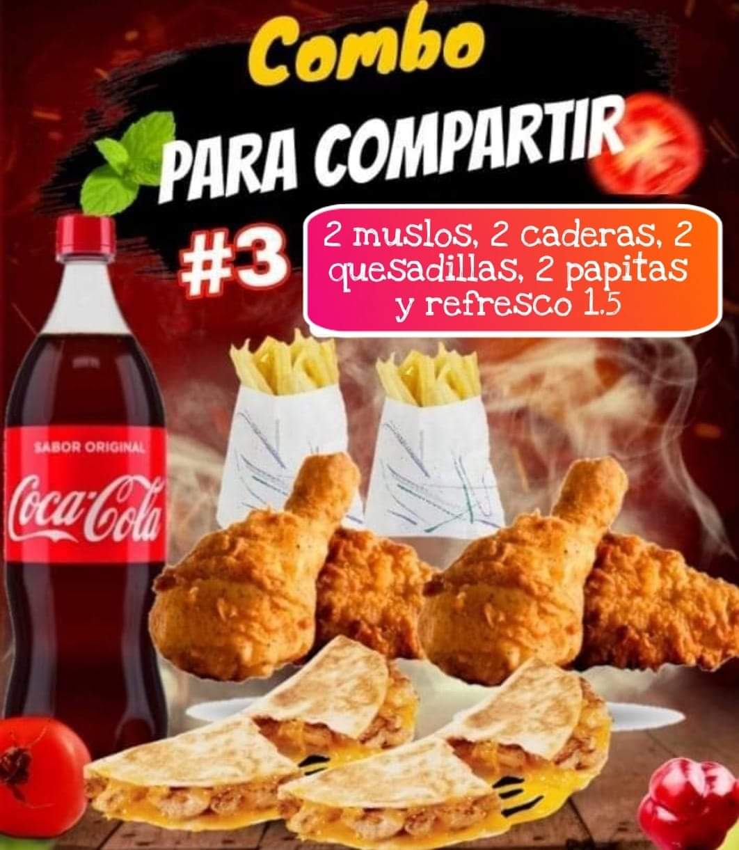 Porción de Muslo y Cadera*2 + Dm Papas Fritas Pequeñas*2 + Quesadillas Con Pollo en salsa*2 + Coca Cola Regular 1.5 L*1