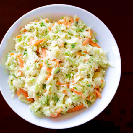 MAYONESA CASERA, REPOLLO, ZANAHORIA, CEBOLLA.