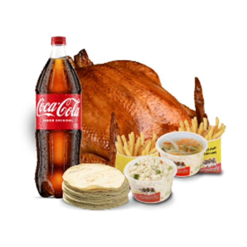 Pollo Entero asado+ 4 Extras+ 1.5L+ 8 Tortillas.