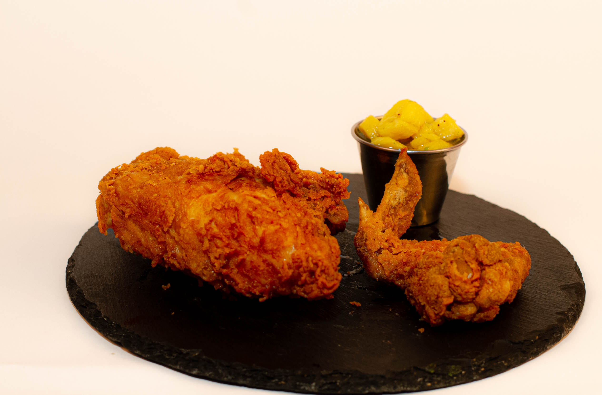 2 Piezas de pechuga y ala, acompañado de acompañado de platanito o tortilla.