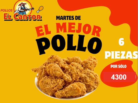 8 Deliciosas piezas de pollo muslo y cuarto, acompañado de platanito o tortillas.