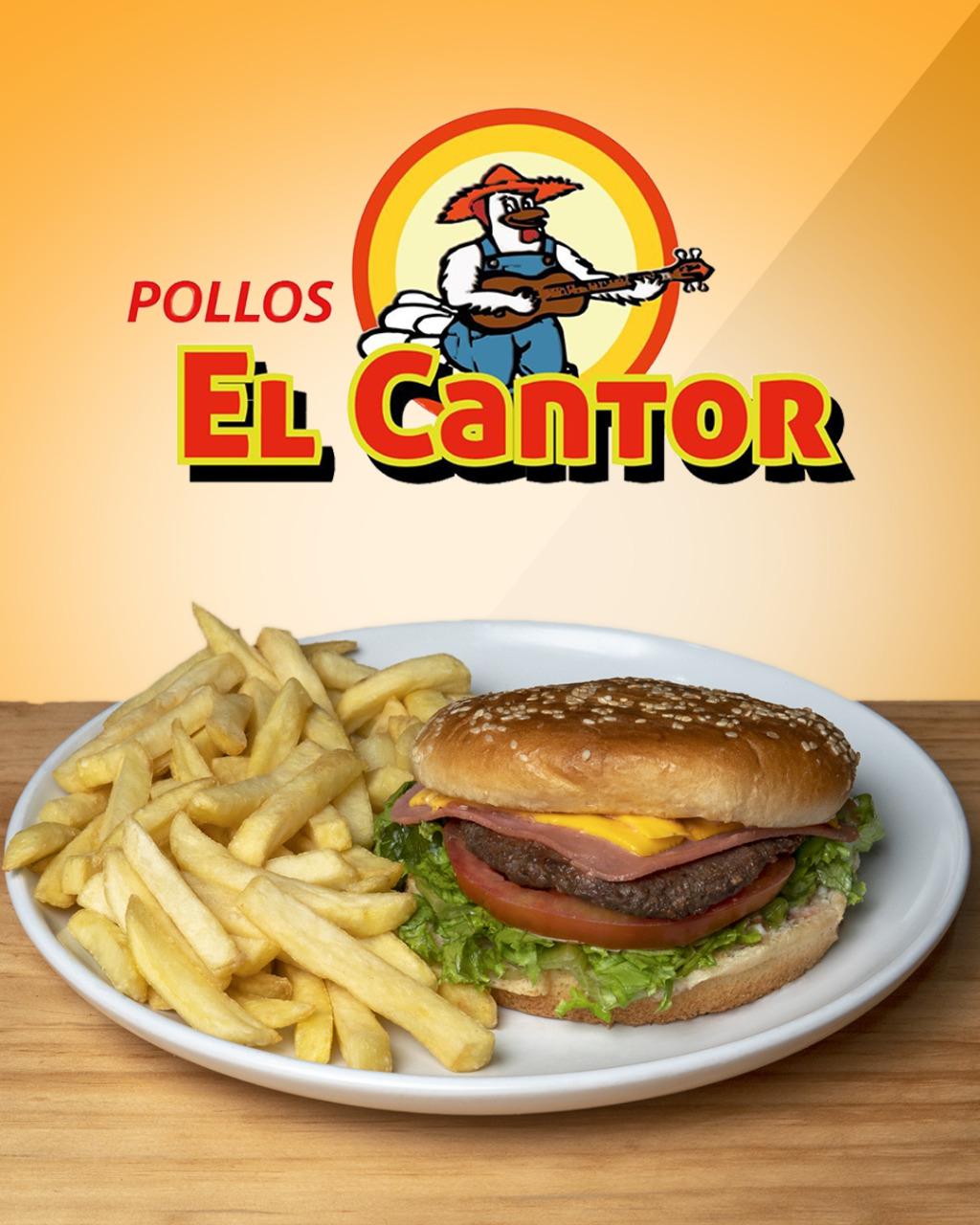 Hamburguesa sencilla mas papas fritas mas refresco de 600 ml.