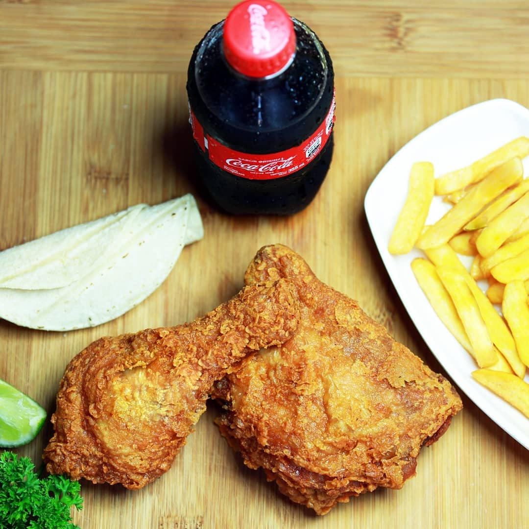 Porcion de Muslo y Cadera + Papas Fritas + Coca Cola 335ml