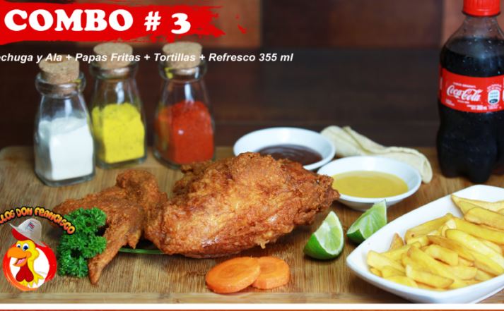 10 Piezas de pollo, 2 papas grandes, 1 ceviche familiar y 1 refresco de 2 l.