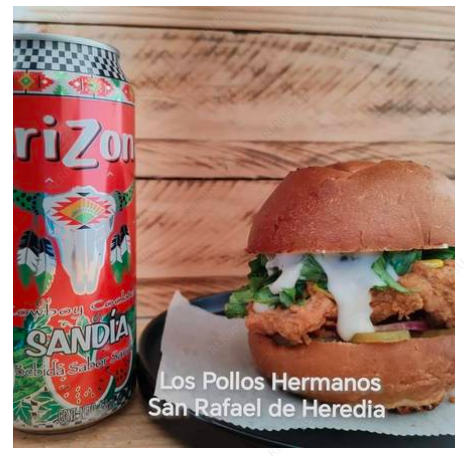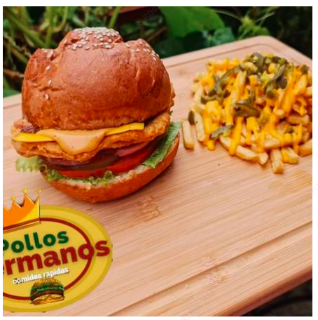 Pan artesanal, pechuga de pollo crispy, queso americano, pepinillos, lechuga, tomate, cebolla morada y salsa chipotle de la casa artesanal.
