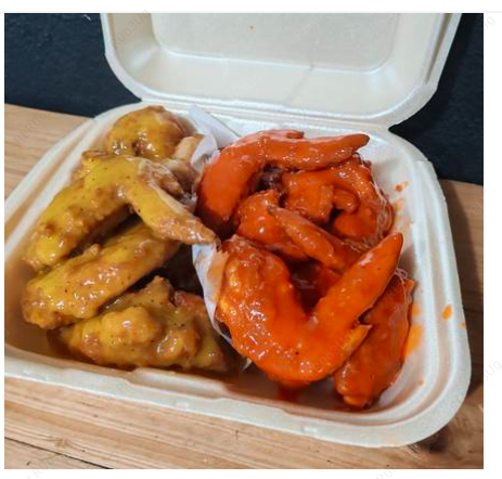 Pan artesanal de 22cm, trocitos de pollo crispy bañado en salsa sweetbuffalo, salsa de queso, salsa chipotle, jalapeños, pepinillos, cebolla morada, lechuga y tomate.