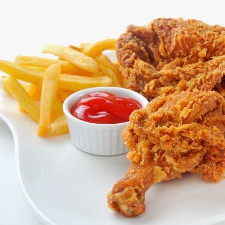 2 Piezas de pollo frito acompañadas de papas fritas y bebida de 355 ml.