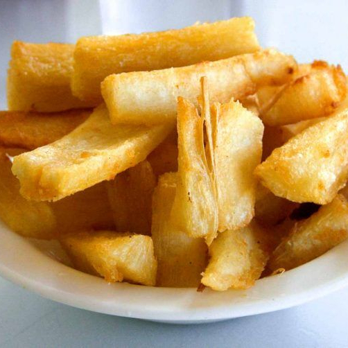 Porcion de yucas fritas.